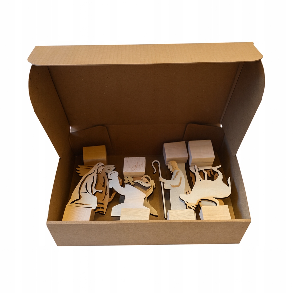 Ми пропонуємо унікальний набір із 9 дерев'яних фігурок, які зображують Пресвяту Родину, Трьох Королів, пастухів і тварин.