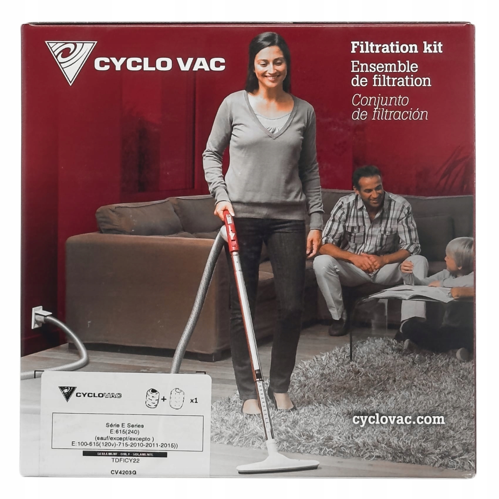 Упаковка містить набір змінних фільтрів для пилососних очищувачів серії Cyclovac E.