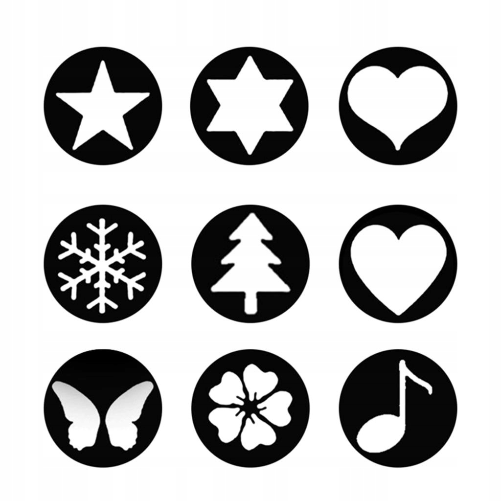 9 в 1 - включено багато візерунків, зірки, сердечка, сніжинки, метелики, квіти, музика, дерева тощо.
