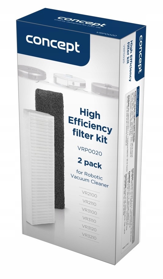 Цей високоефективний набір фільтрів розроблений для роботизованих пилососів Concept і повністю сумісний з моделями VR2100, VR2110, VR3100, VR3110, VR3120 і VR3210. Містить 2 частини поролону та 2 частини фільтрів HEPA 13, які забезпечують високий ступінь фільтрації. Пилососи, оснащені цими фільтрами, вловлюють до 99,9% частинок з повітря, включаючи бактерії та віруси. Тому вони також підходять для домогосподарств з алергією та астмою. Обидва фільтри можна мити.