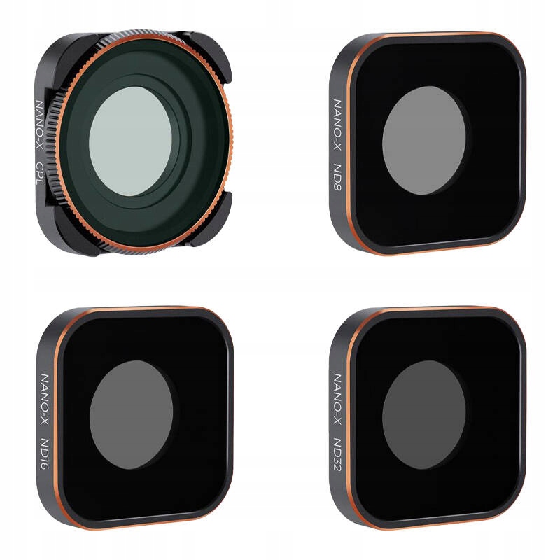 У набір входить фільтр CPL і 3 типи фільтрів ND. Кожен з них ідеально підходить для різних сценаріїв. Наприклад, фільтр CPL зменшує відблиски і підсвічує блакитний колір неба - його з успіхом можна використовувати для пейзажної зйомки. Фільтр ND8 (3 ступені) стане в нагоді в похмурі дні, а фільтр ND16 (4 ступені) стане відмінним вибором для запису при звичайному денному світлі. Фільтр ND32 (5 ступенів) найкраще підходить для зйомки при яскравому сонячному світлі.