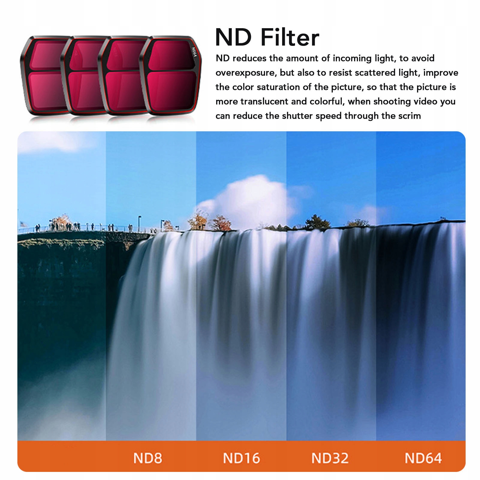 5. Функціональність фільтра ND: ND фільтри зменшують суперництво світу, щоб запобігти X -Rays та блокувати розподілений світ. Вони збільшують насичення кольорів, створюючи чіткіші, яскравіші зображення у фотографії та відеографії.