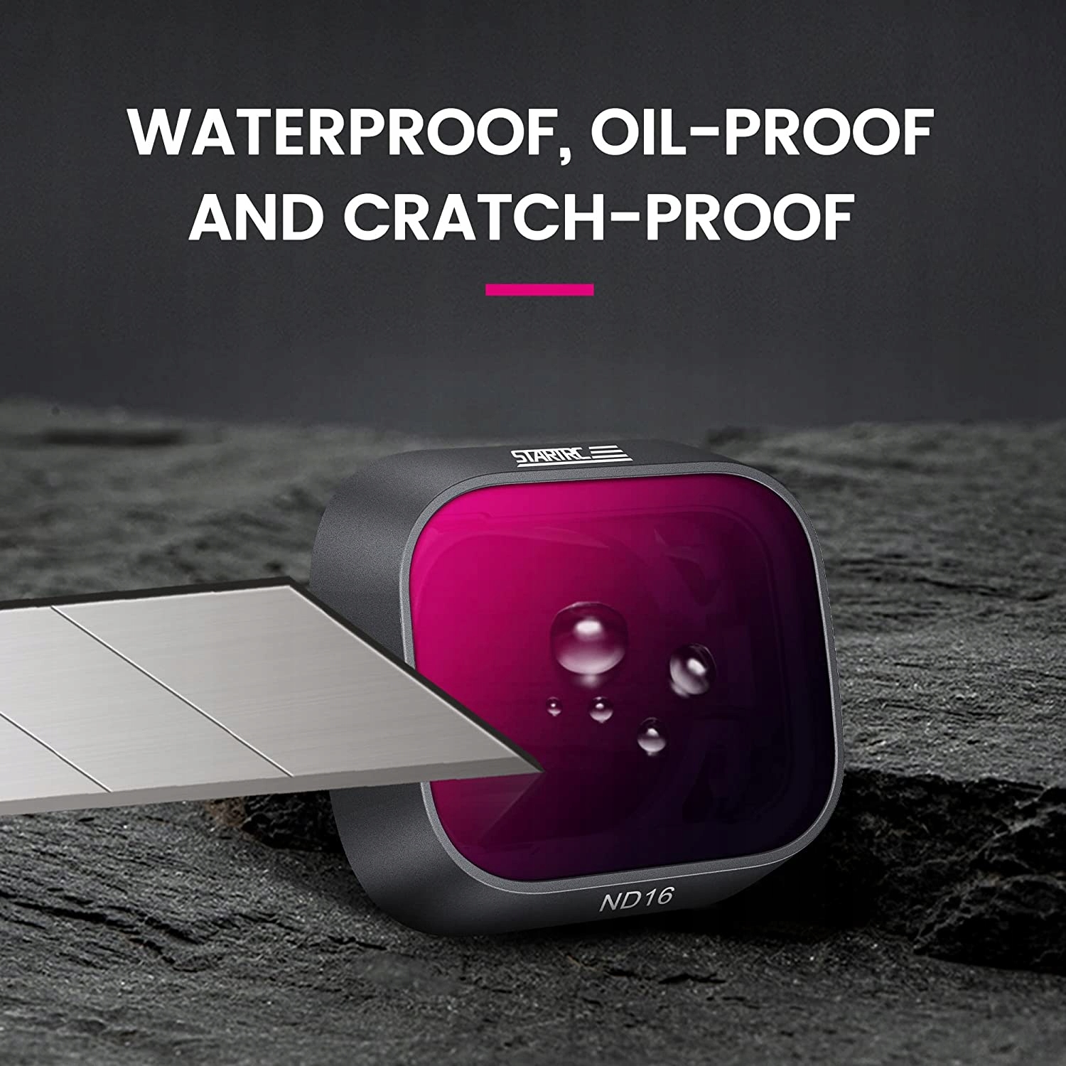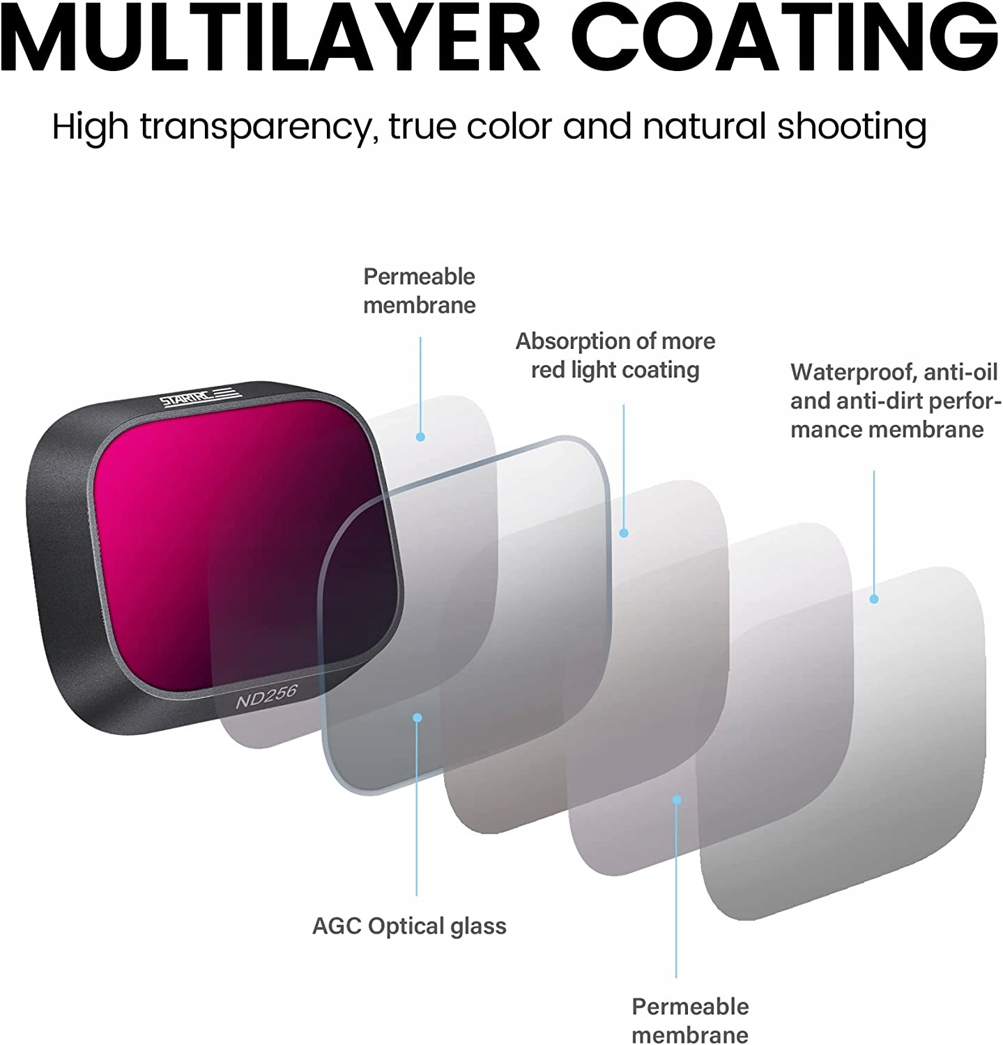 Високоякісний фільтр ND - набір фільтрів ND включає ND16, ND64, ND256. Виготовлений з високоякісного оптичного скла AGC від Tomat, багатошарове покриття захищає лінзу. Фільтр ідеально підходить для дрона DJI Mini 3 Pro.