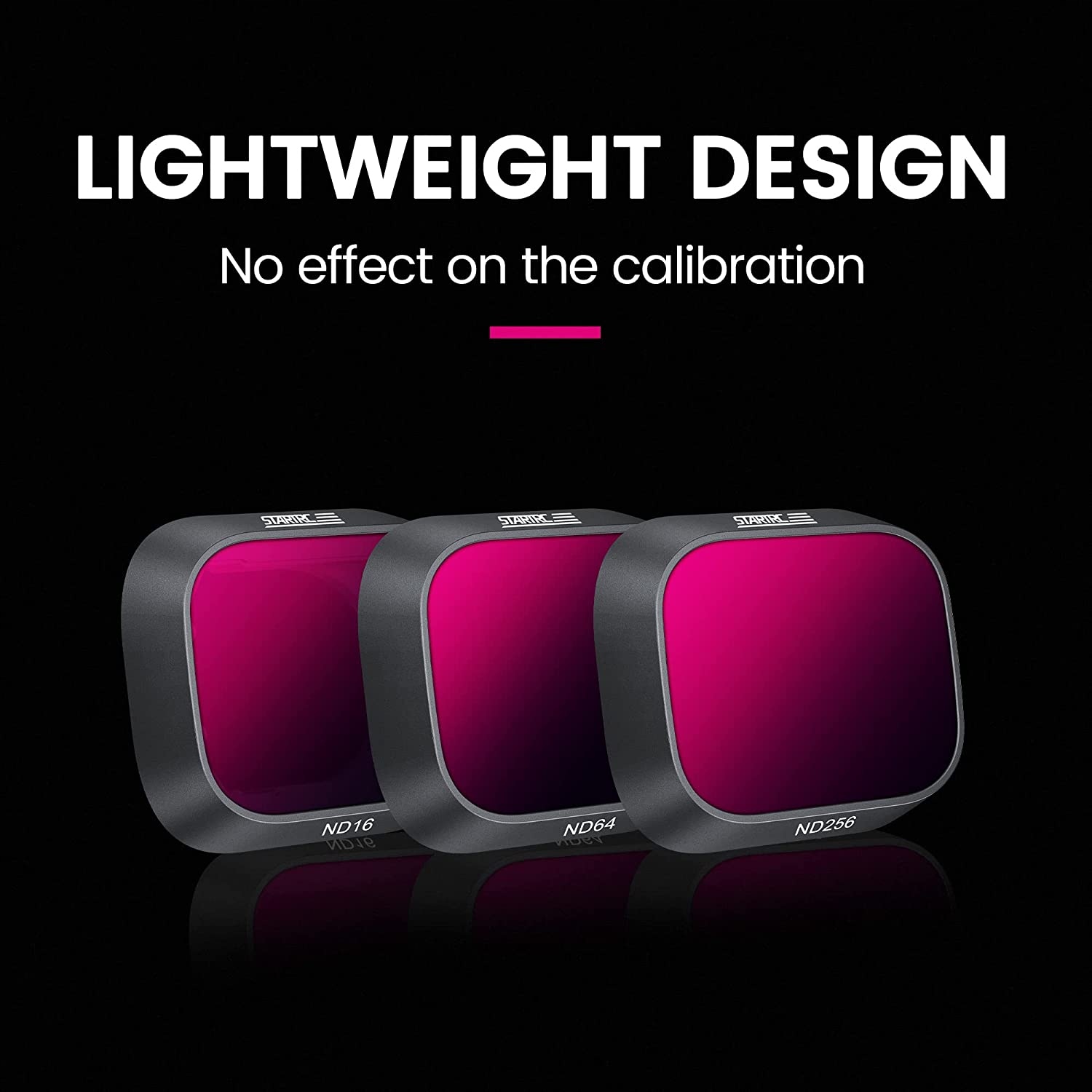 Високоякісний фільтр ND - набір фільтрів ND включає ND16, ND64, ND256. Виготовлено з високоякісного оптичного скла AGC від Tomat, багатошарове покриття для захисту фільтра об’єктива, ідеально підходить для дрона DJI Mini 3 Pro.