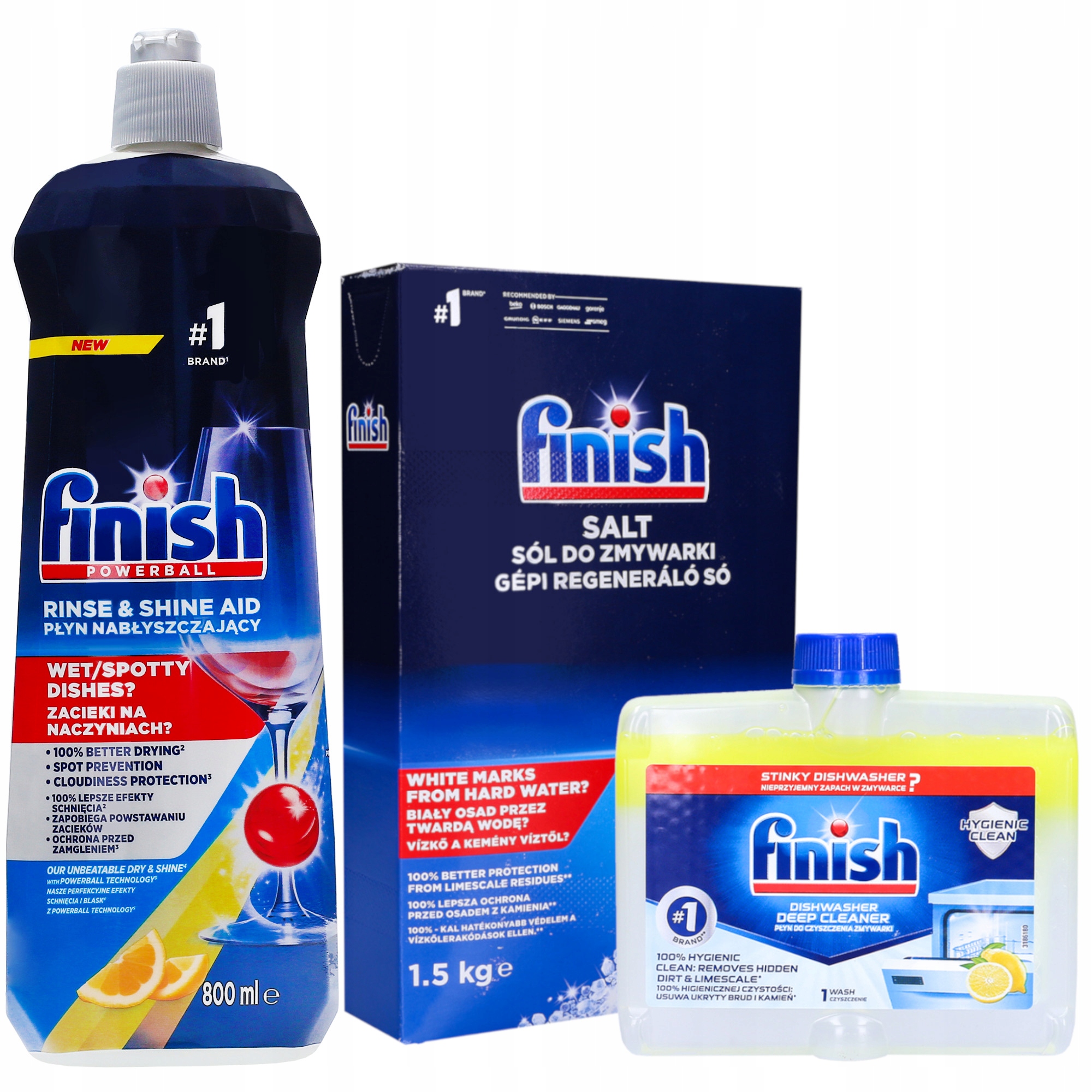 Finish Salt не тільки захищає пристрій від вапняних відкладень і усуває плями на посуді, але також пом'якшує воду і покращує роботу посудомийної машини. Досягає важкодоступних місць, наприклад спринклерних рукавів і труб. Підтримує дію мийного засобу, щоб зробити посуд ще чистішим і блискучим. Сіль Finish рекомендована провідними виробниками посудомийних машин.