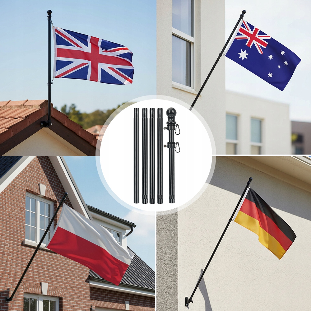 Зробіть свій сад, двір, веранду чи гараж цим елегантним набором древків для прапорів, створюючи класичну естетику. Підходить для щоденного використання або для особливих випадків, таких як День незалежності, День пам’яті або Різдво, на цьому універсальному флагштоку можна розмістити прапори різних розмірів, що робить його ідеальним доповненням до будь-якої обстановки.