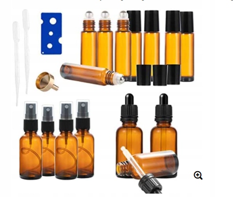 Набір пляшок - 4 х 30 мл пляшки з розпилювачем, 8 х 10 мл скляних пляшок і 3 х 30 мл пляшки з піпетками для ароматерапевтичних сумішей квіткової води з піпетками, воронка