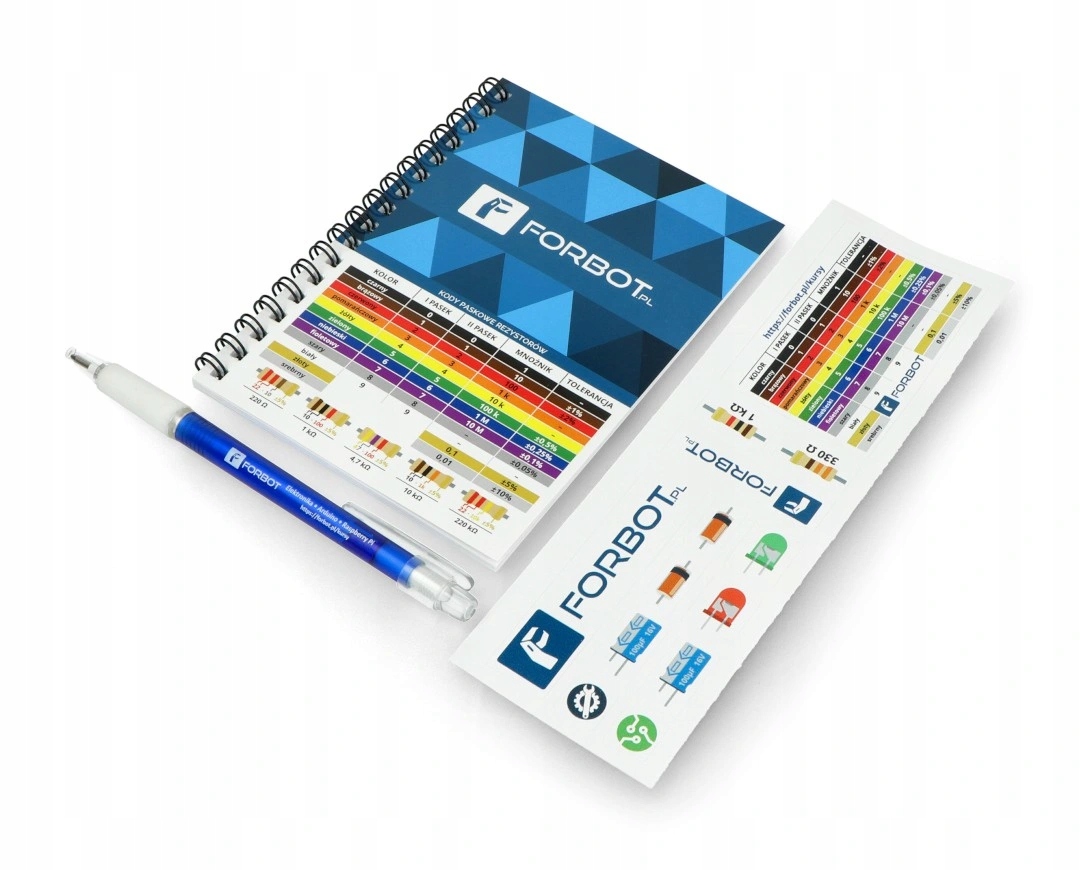 Набір включає модуль - головну плату Arduino Unoта базові елементи електроніки : рідкокристалічний дисплей із роз’ємами, макетною платою, проводами, діодами, резисторами та багато іншого. На основі цих пристроїв доступний онлайн-курс на форумі Forbot.pl .