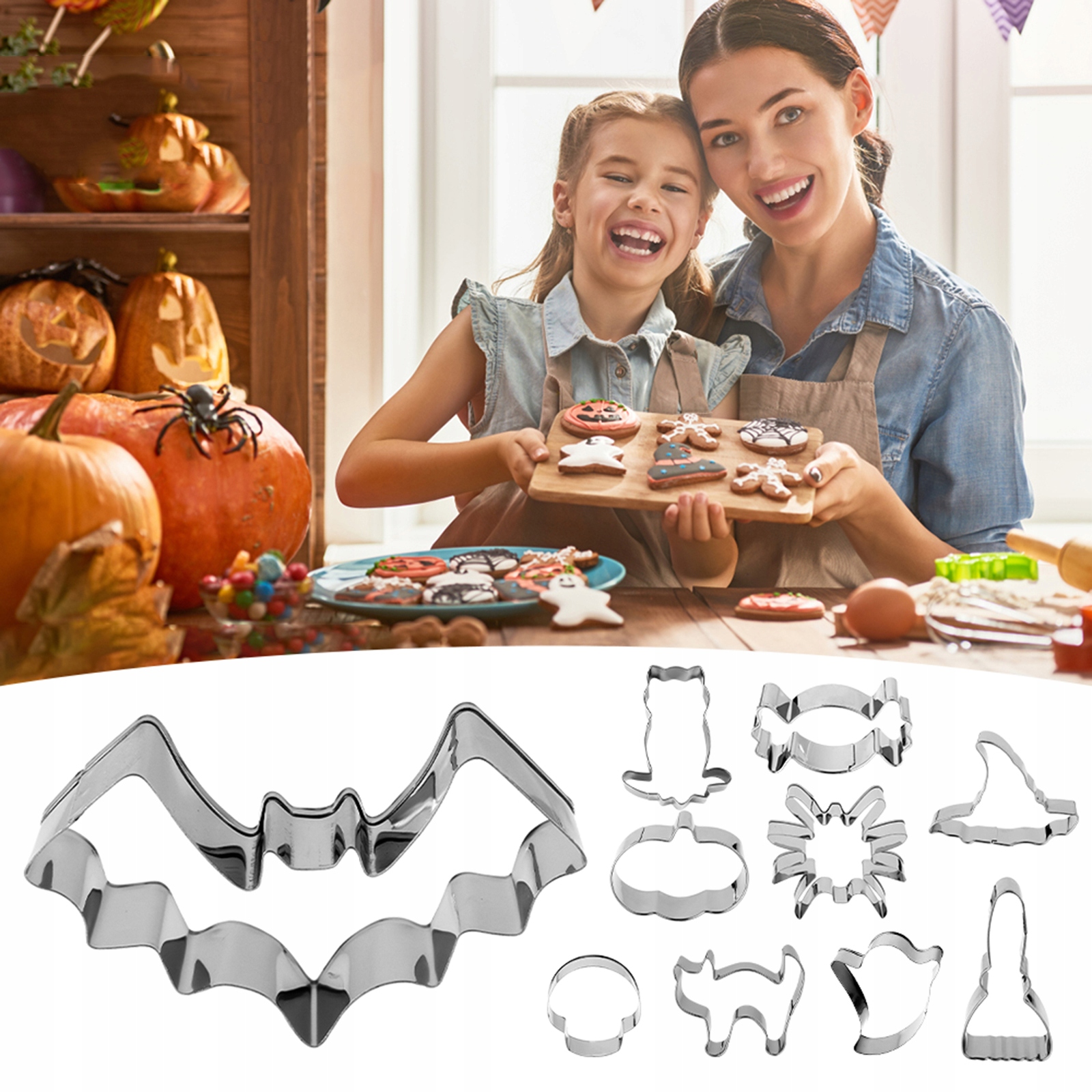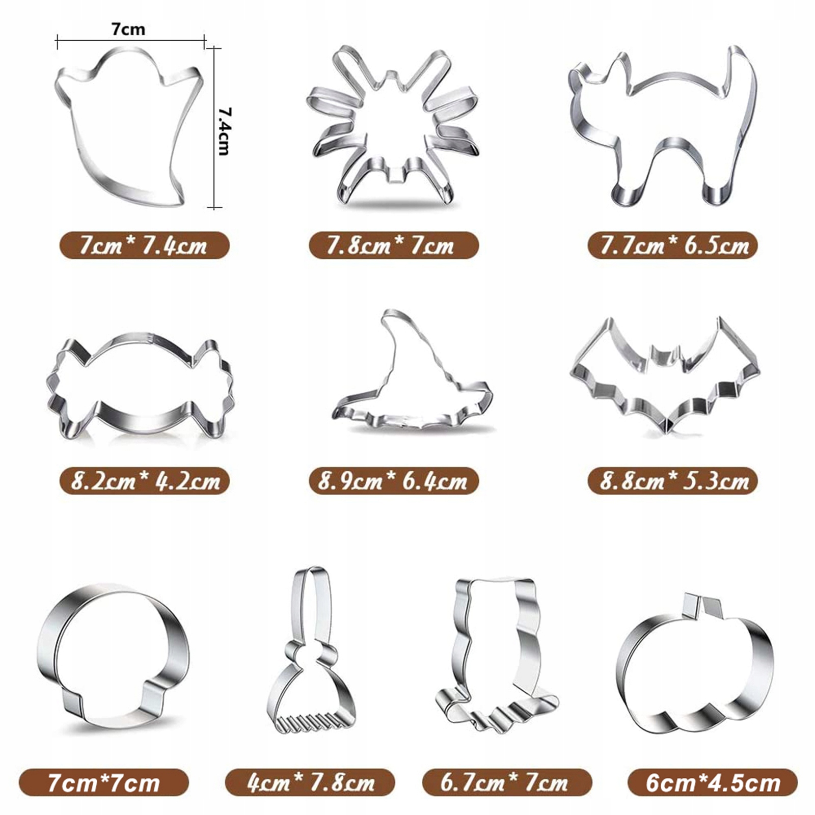 НАБІР ФОРМОЧОК З НЕРЖАВІЮЧОЇ СТАЛІ НА ХЕЛЛОВІН, 10 ШТ.