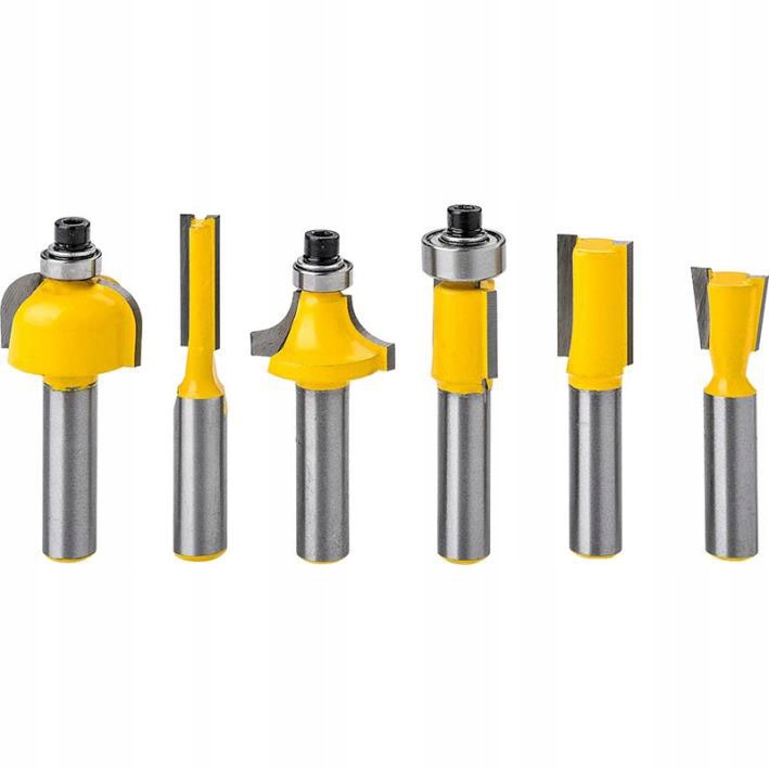 Набір містить 6 різних фрез, які можна використовувати для механічного різання деревини за допомогою відповідного електроінструменту.