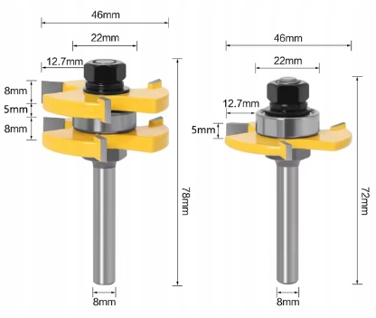 У цьому додатковому наборі можна використовувати одну фрезу для виготовлення пазу та іншу для виготовлення шипа.