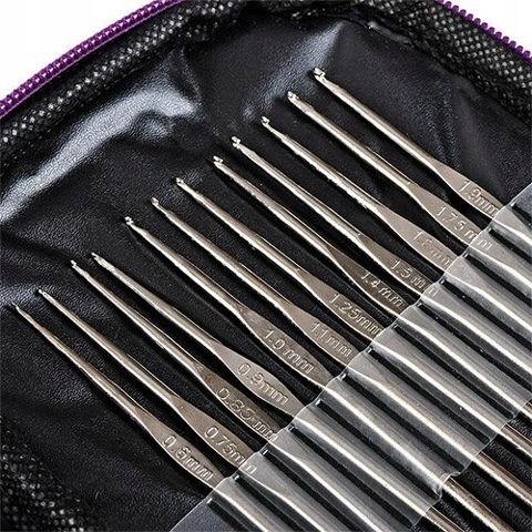✅ 12 срібних гачків для в’язання з нержавіючої сталі розміром: 0,60, 0,75, 0,85, 0,85, 1,00, 1,10, 1,25, 1,40, 1,50, 1,60, 1,75, 1,90 мм