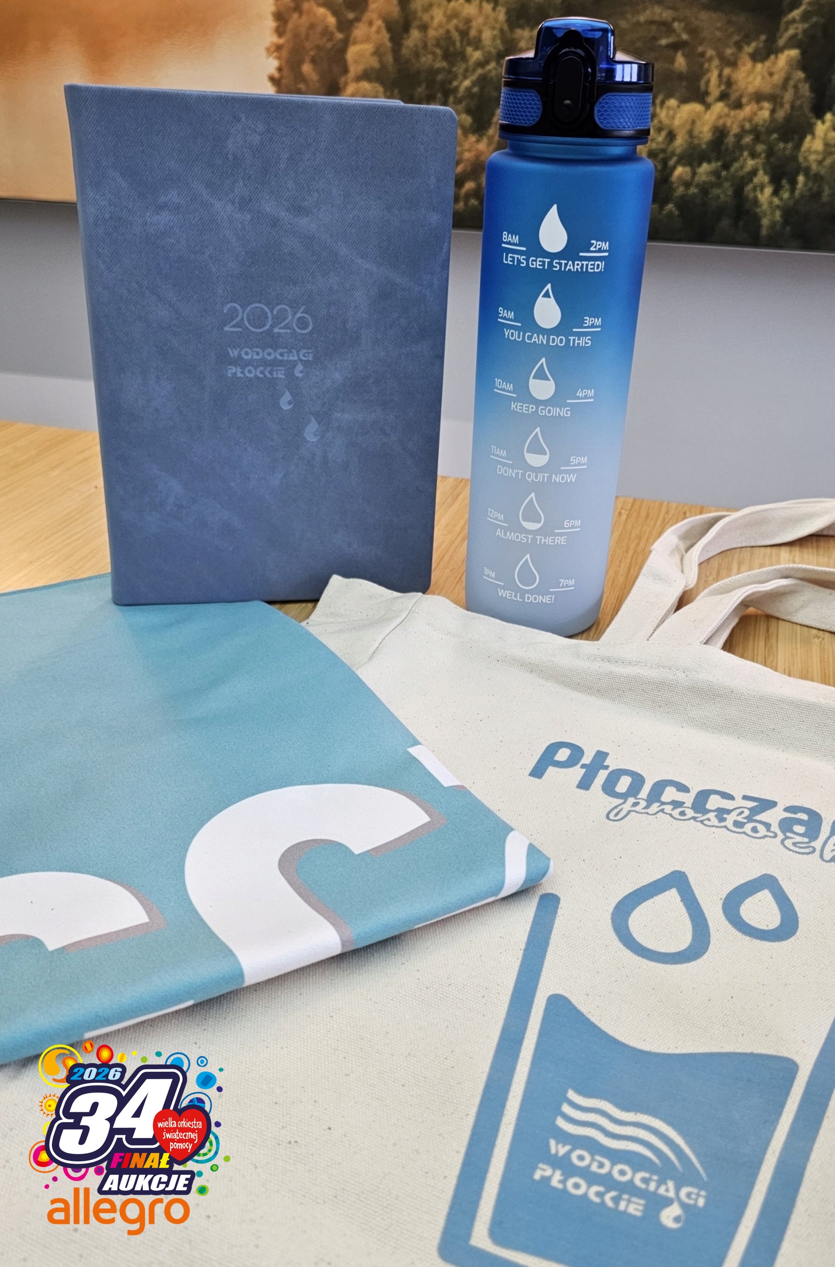 Ми щиро заохочуємо вас взяти участь у торгах на водопровідний набір, що складається з мотиваційної пляшки, швидковисихаючого рушника, календаря-книги водопроводу на 2026 рік і тканинної сумки для покупок.
