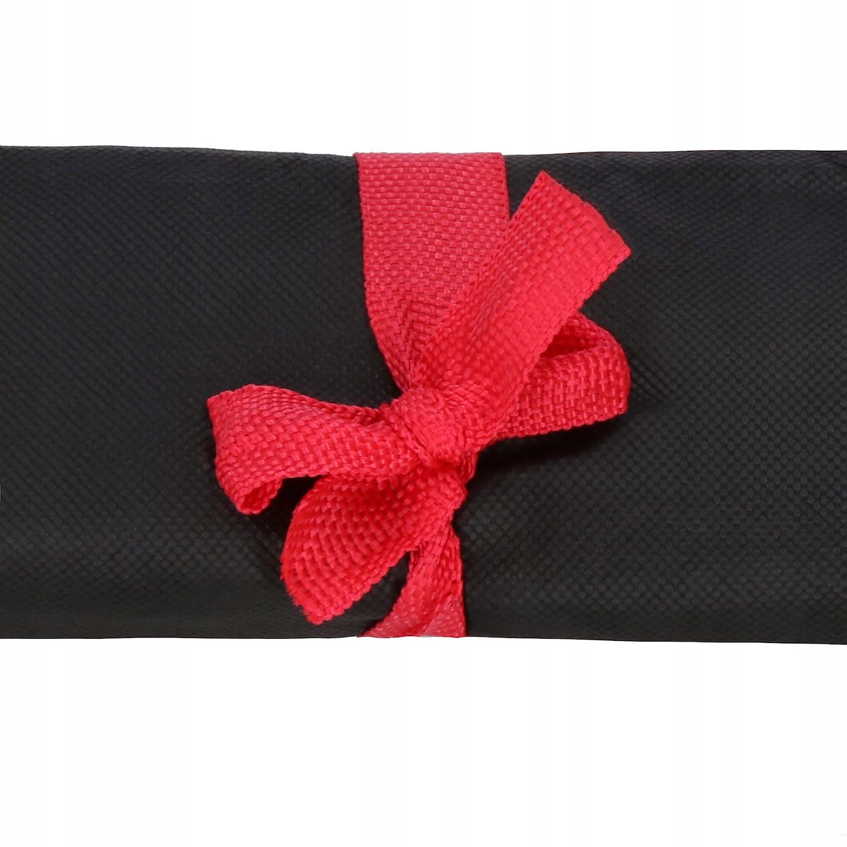 - Чехол з м’якої тканини, згорнутий у рулон, оснащений шнурками для зав’язування та двома петлями для підвішування на стіні.