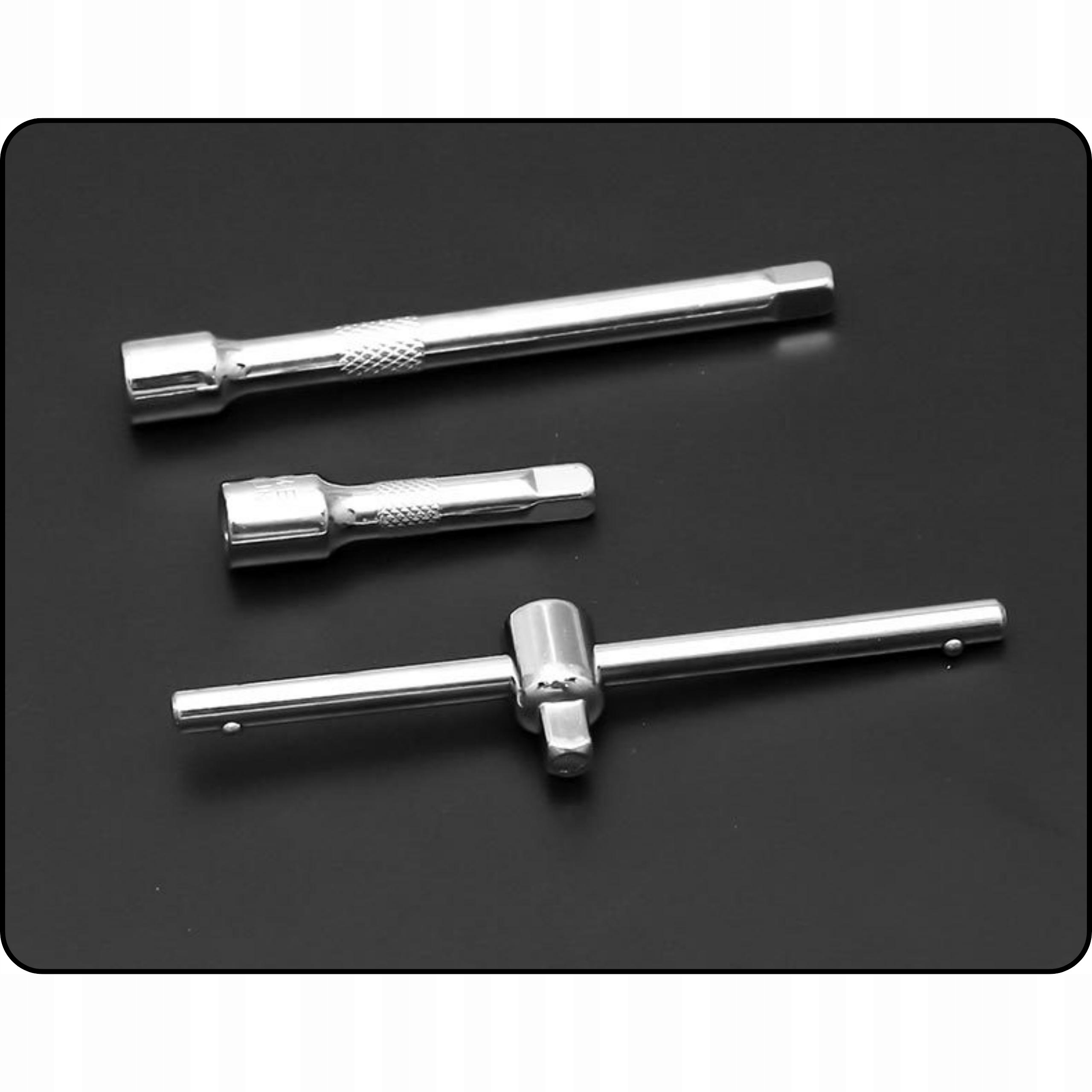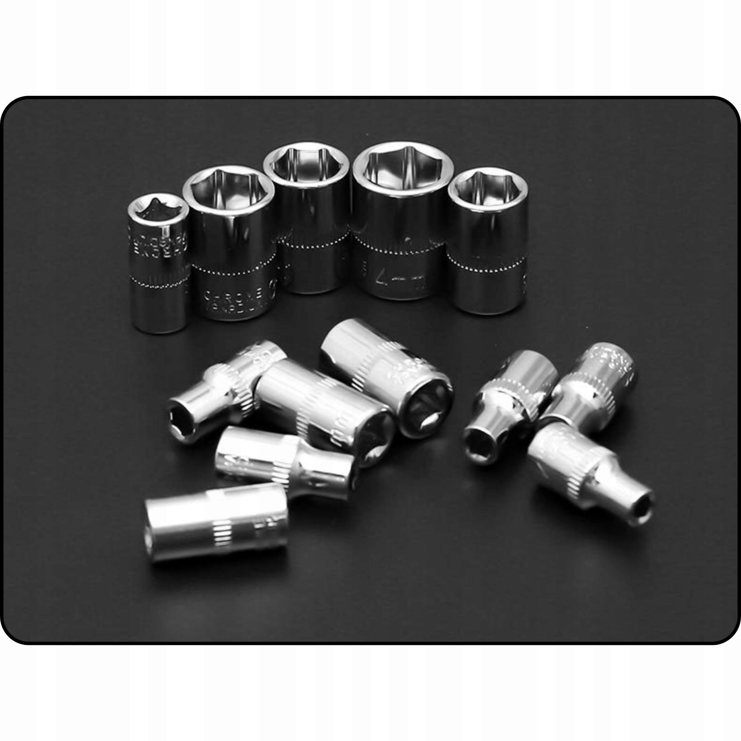 - Набір виготовлено з високоякісної хром-ванадієвої сталі, яка є стійкою до іржі, корозії та зношування. Він також має хромоване покриття, яке надає йому блиск і захист. Всі елементи ретельно виготовлені і мають гладкі краї, які не травмують руки. Додатково промарковані всі розміри розеток.