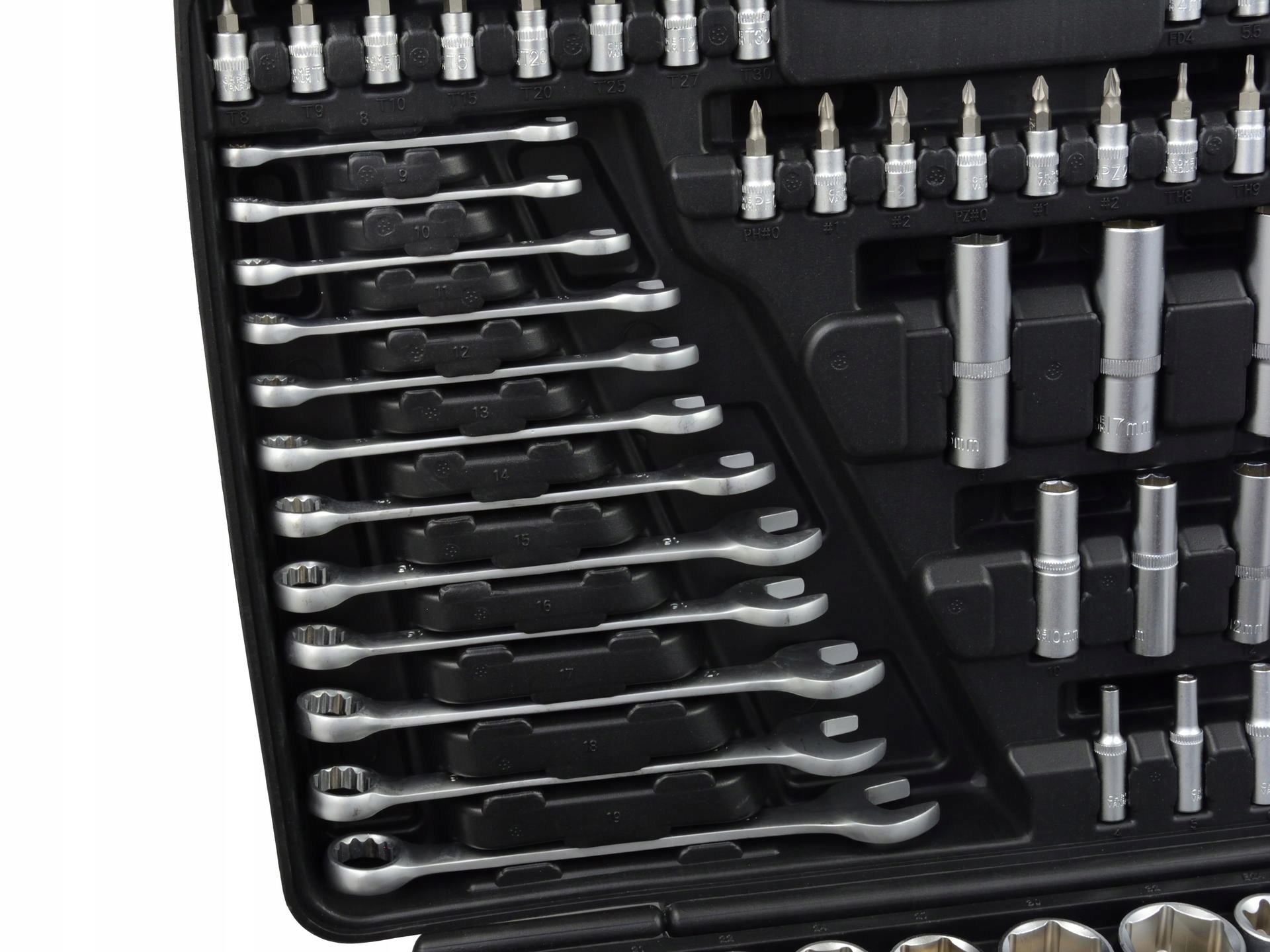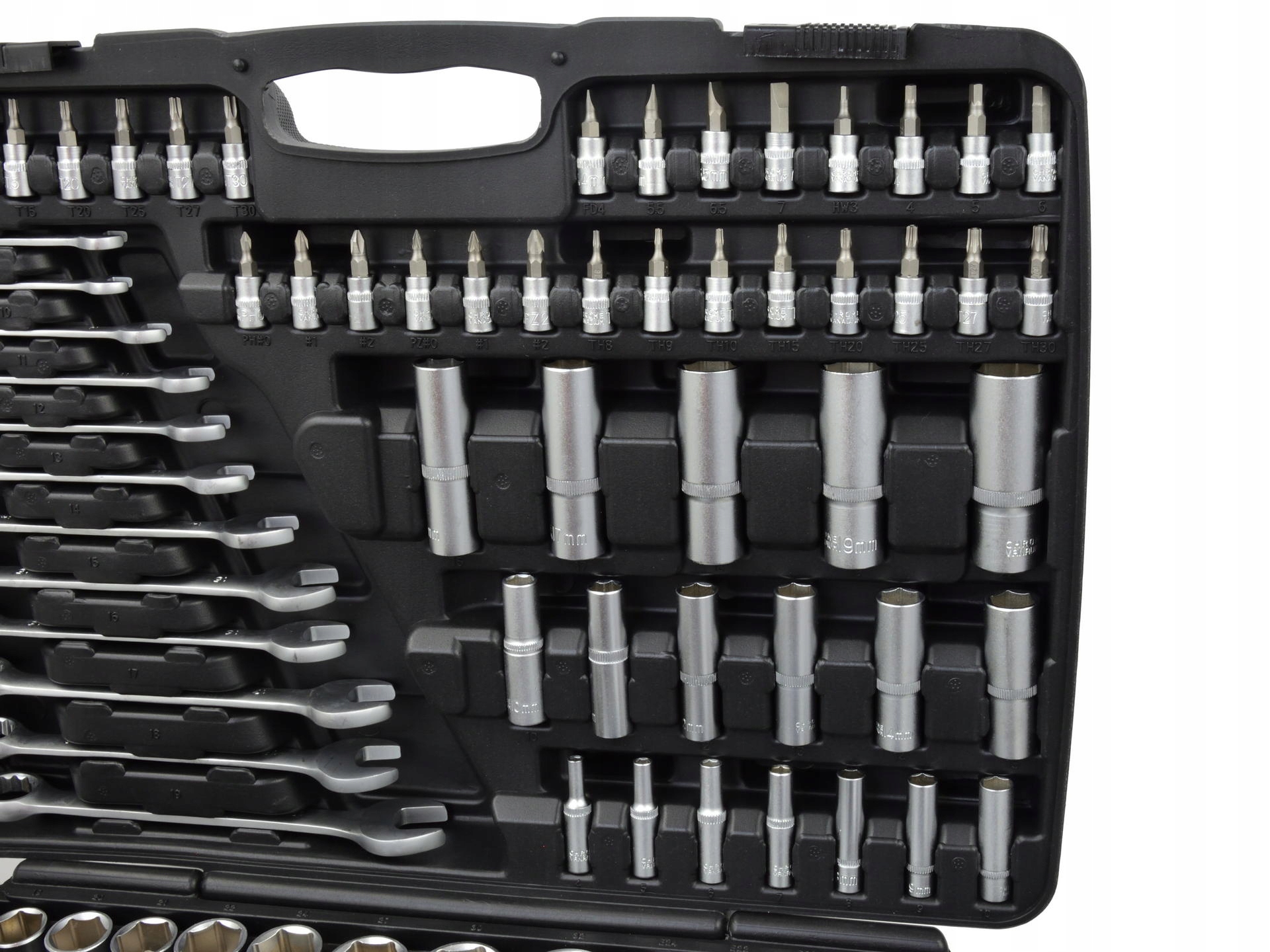 Універсальний набір для майстерень, сервісів і домашнього використання. Ключі виготовлені з високоякісної хром-ванадієвої легованої сталі. Все упаковано в естетичний пластиковий чемодан.