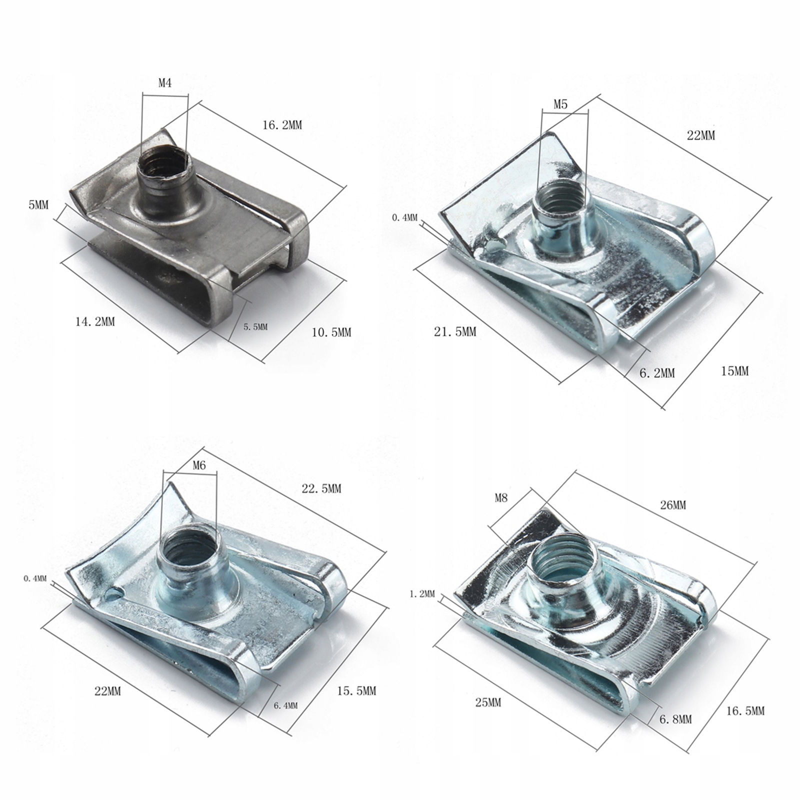 Упаковка: 50 шт., гайки M4, 10 шт., M8.