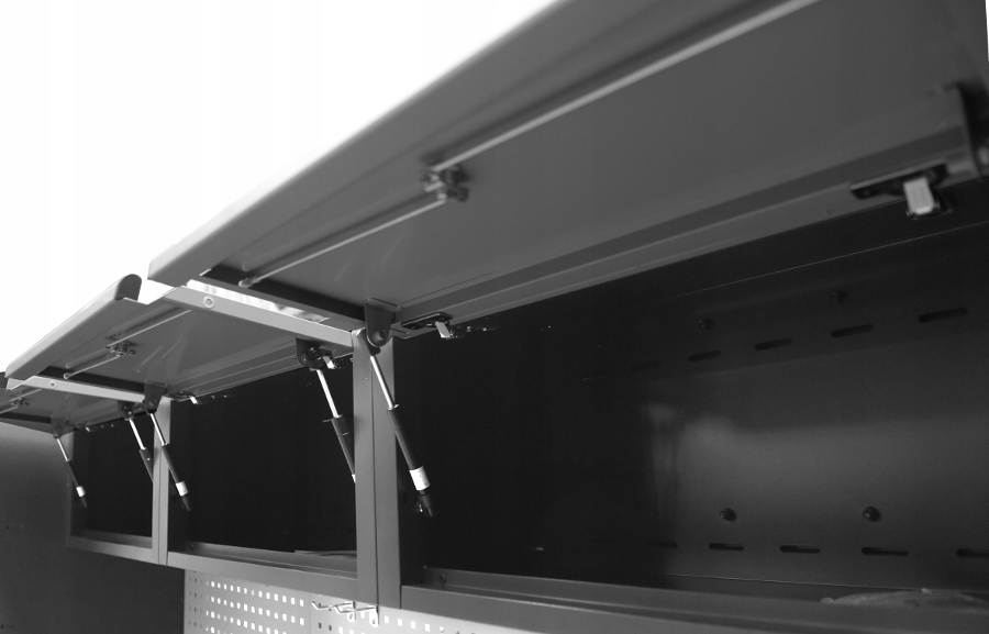 Три підвісні шафи, оснащені циліндрами, забезпечують комфорт та комфорт роботи.