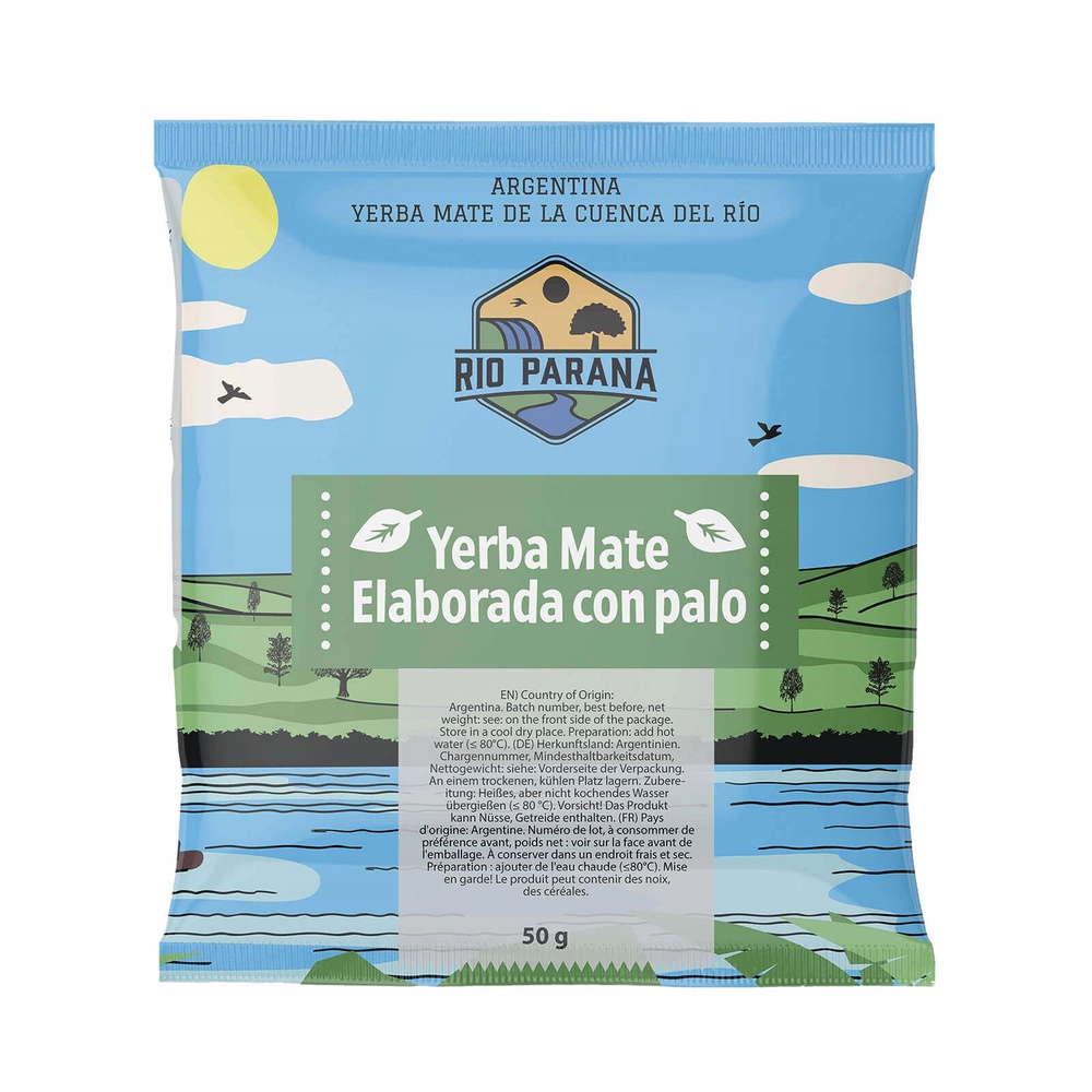 Rio Parana Elabroada con Palo - класичний аргентинський йерба - тільки сушений, без добавок. В упаковці ви знайдете середньорозрізані листя падуба, гілки та велику кількість пилу. Відразу після відкриття упаковки відчувається трав'яний, природний аромат, що нагадує свіже сіно та дим від багаття. Це пов’язано з традиційним способом виробництва сушіння падуба димом. Смак глибокий і багатогранний, з гірчинкою і димними нотками. Водночас він не надто інтенсивний, тому не збентежить початківців ентузіастів математики.
