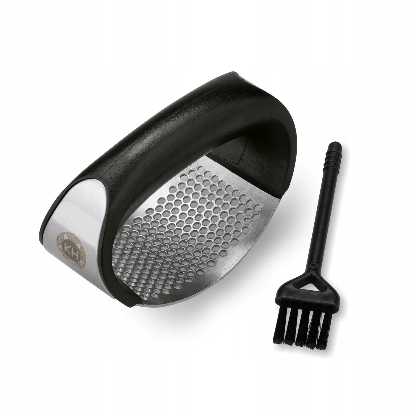 Часникодавка Konighoffer зі щіткою виготовлена з нержавіючої сталі. Це забезпечує довговічність і хороший захист від запахів. Завдяки численним маленьким отворам кожен зуб буде ретельно притиснутий. Чорна профільована ручка добре лежить в руці. Зубна щітка, що входить в комплект, полегшить догляд за соковижималкою.