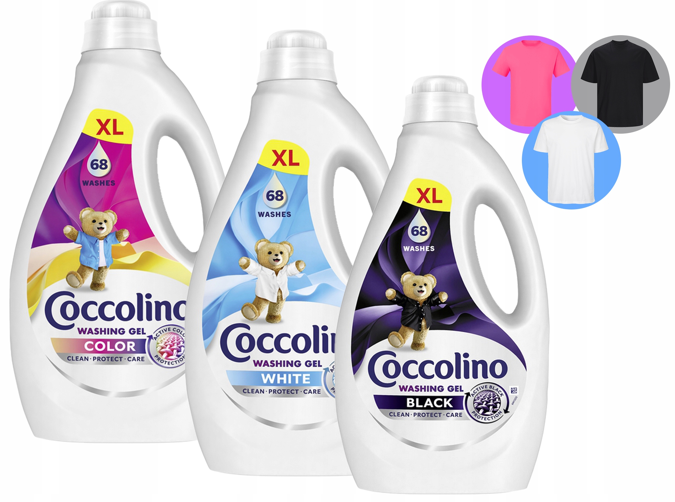 ✅Спеціальна формула для кожного кольору: Coccolino Black інтенсивно доглядає за чорними тканинами, зберігаючи їхню глибину та колір. Coccolino Color ефективно захищає барвистий одяг від вицвітання, а Coccolino White підкреслює білизну та запобігає сірінню.