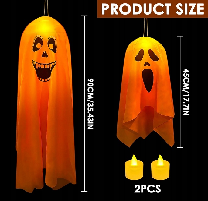 - Стійкий матеріал. Наша креативна підвіска-привид на Хеллоуїн виготовлена з високоякісного поліестеру, щоб зробити її більш реалістичною, м’якою та дихаючою, яскравого кольору.
