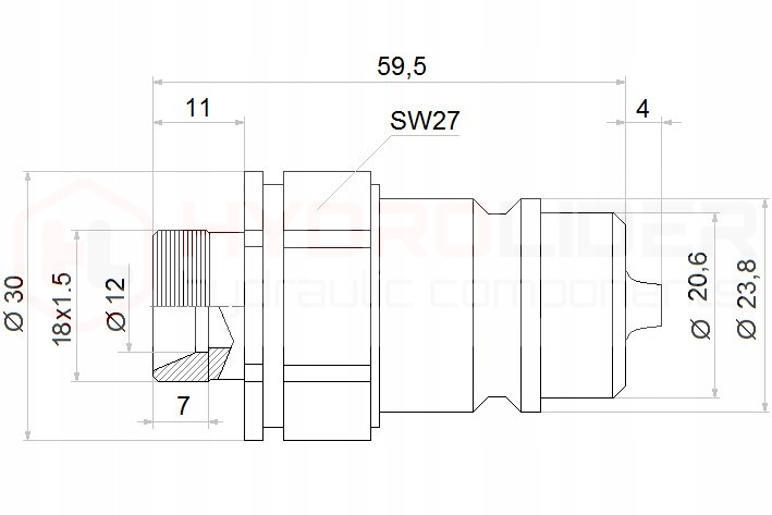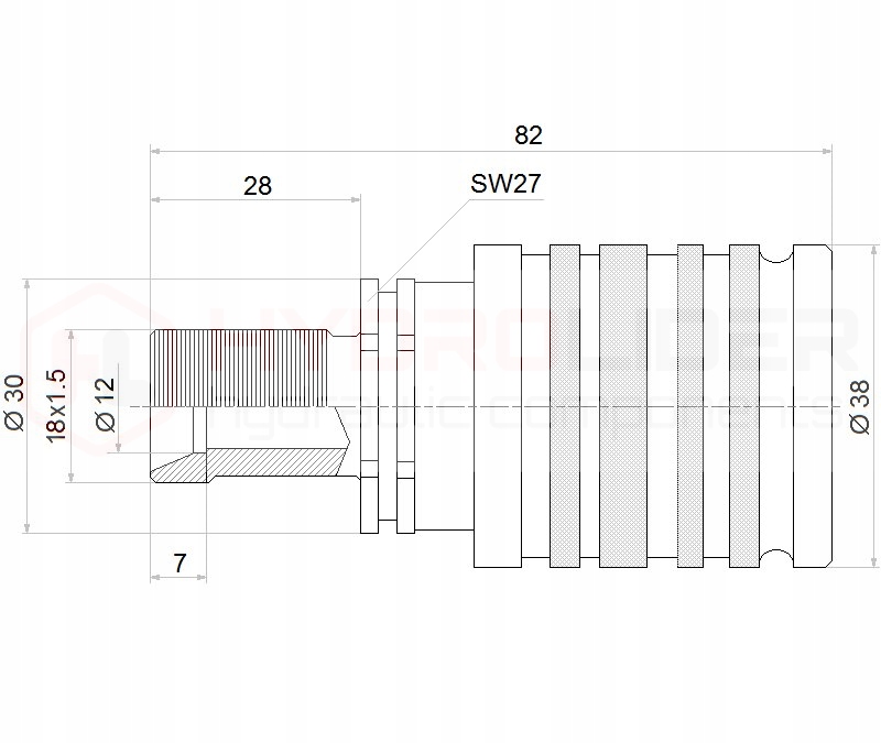 Потік з боку кабелю: Зовнішній метрик 18x1.5