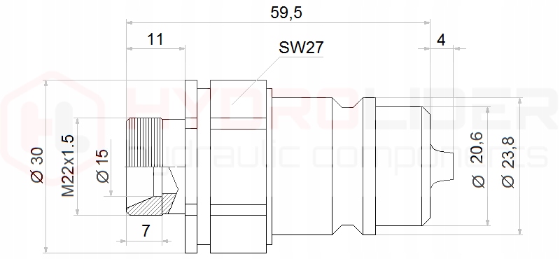 НАБІР ГІДРАВЛІЧНИХ ШВИДКИХ З'ЄДНЕНЬ ГНІЗДОВА ПРОБКА M22x1.5 ГІДРОЛІДЕР