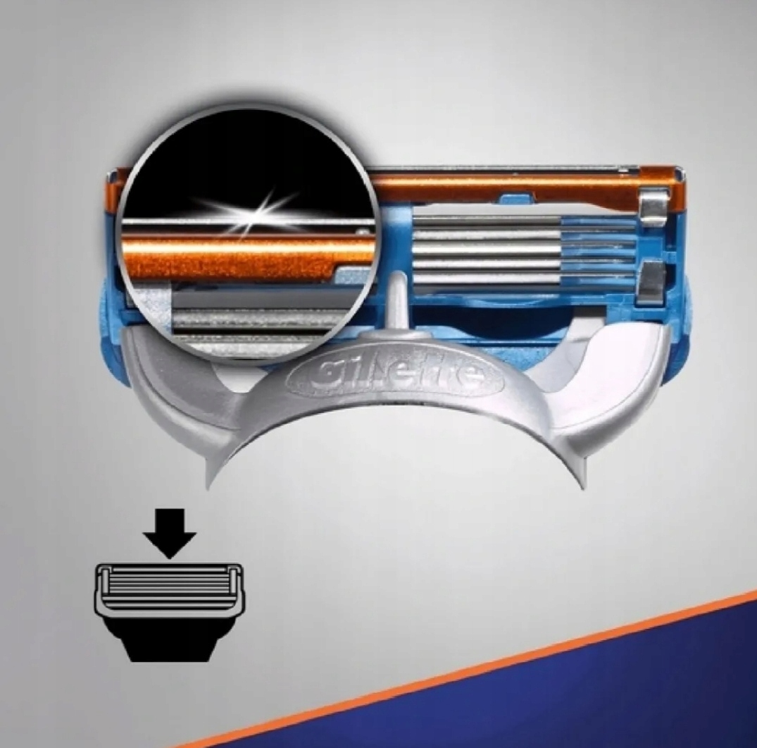 Змінні картриджі для бритви для чоловіків мають 5 лез із покриттям, що зменшує тертя, що підвищує комфорт гоління. На задній частині бритви є тример, який точно підстригає бороду у важкодоступних місцях і укладає її. Картриджі також мають зволожуючу смужку, яка поступово втрачає свій колір, коли якість гоління перестає бути оптимальною.