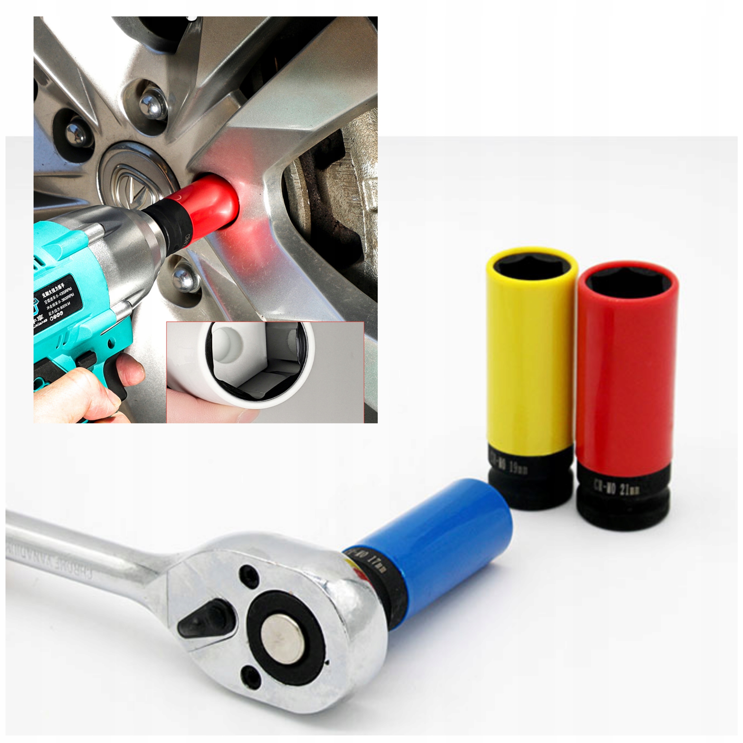 НАБІР ГНІЗДІВ 1/2" для алюмінієвих дисків, 3 шт., 17, 19, 21 мм, кольорові