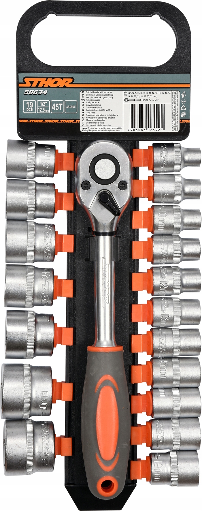 НАБІР ГНІЗДІВ З ТРІСПОВИКОМ 1/2", 19CZ 58634