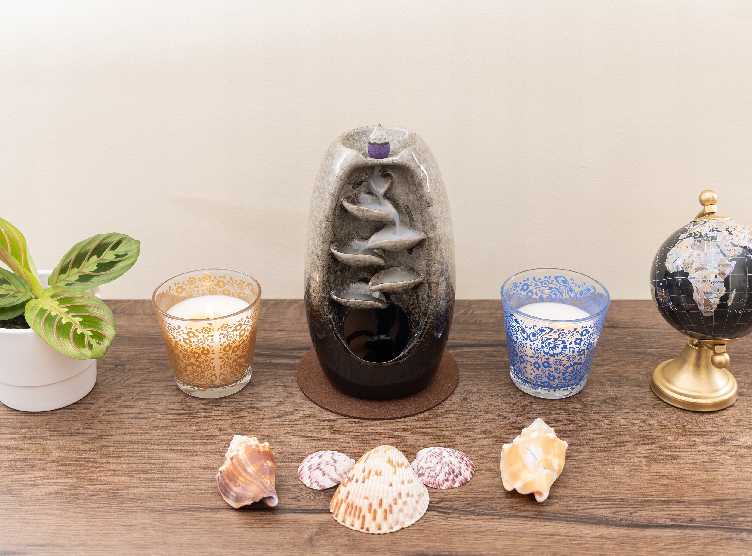 Дуже важливо правильно розташувати ароматичну паличку. Якщо отвір не закривати повністю, дим не буде мати форму водоспаду і падати вниз, і красивого ефекту не буде досягнуто. Ретельне розташування змусить дим текти вниз і плавно підніматися над ним