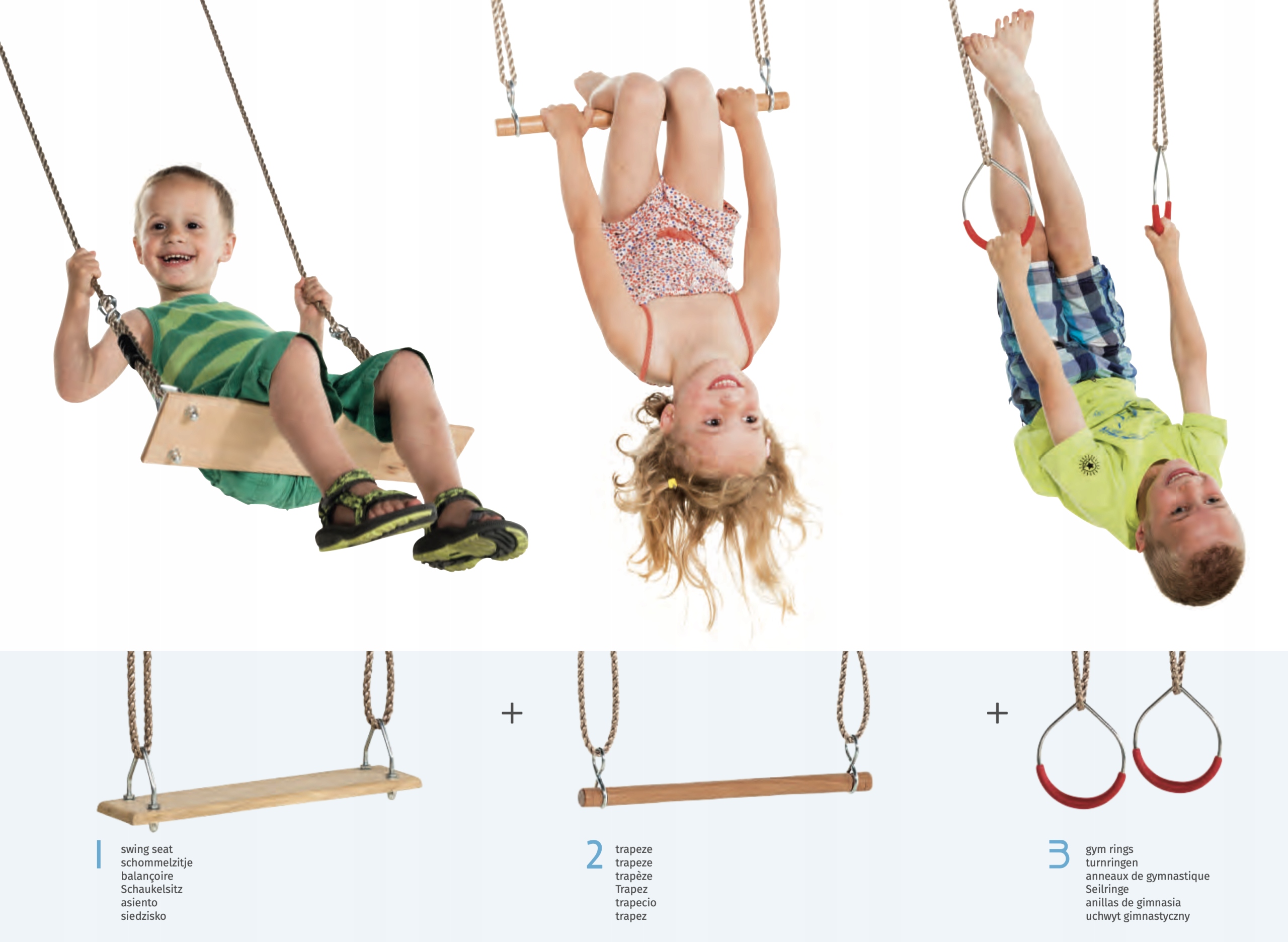 Дитина може традиційно гойдатися, сидячи на дерев'яному сидінні або повисши на трапеції руками чи ногами, а також використовувати її як підтягування, а також виконувати акробатичні вправи з металевими обручами. Кожна діяльність вимагає зусиль у багатьох групах м’язів: рук, які повинні нести та утримувати вагу тіла, ніг, які мають мати ефективну підтримку, і, перш за все, м’язів живота, які відповідають за ефективні підтягування. Це чудовий спосіб безпечної розваги в поєднанні з фізичною активністю, яка покращить фізичний стан дітей, а також дозволить приємно провести час на свіжому повітрі.