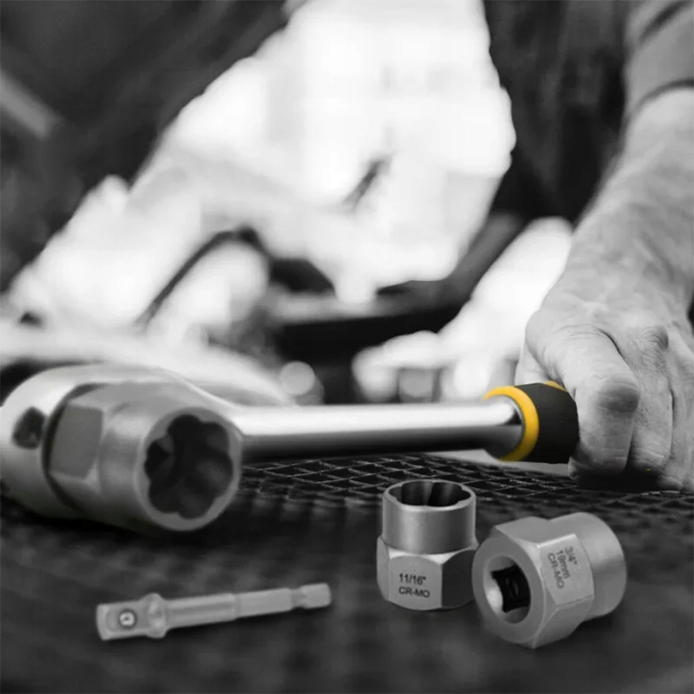 Підходить до розмірів шестигранної головки: 6,35 мм (1/4 дюйма), 8 мм (5/16 дюйма), 9,5 мм (3/8 дюйма), 10 мм, 11 мм (7/16 дюйма), 12 мм, 12,7 мм (1/2 дюйма), 13 мм, 14 мм (9/16 дюйма), 16 мм (5/8 дюймів), 17 мм, 17,5 мм (11/16 дюймів), 19 мм (3/4 дюйми), ідеально підходить для заміни іржавих, закруглених або ослаблених гайок і болтів.