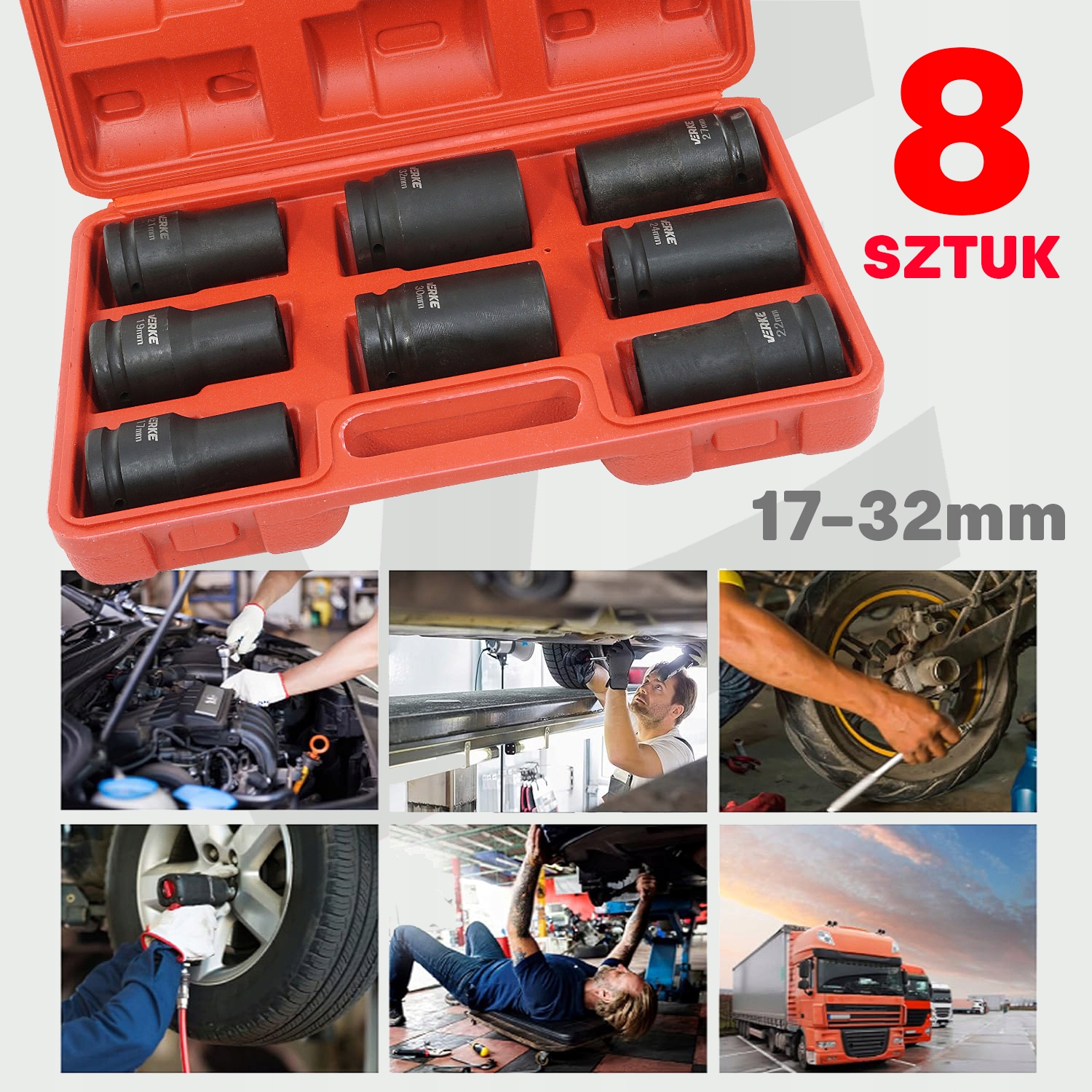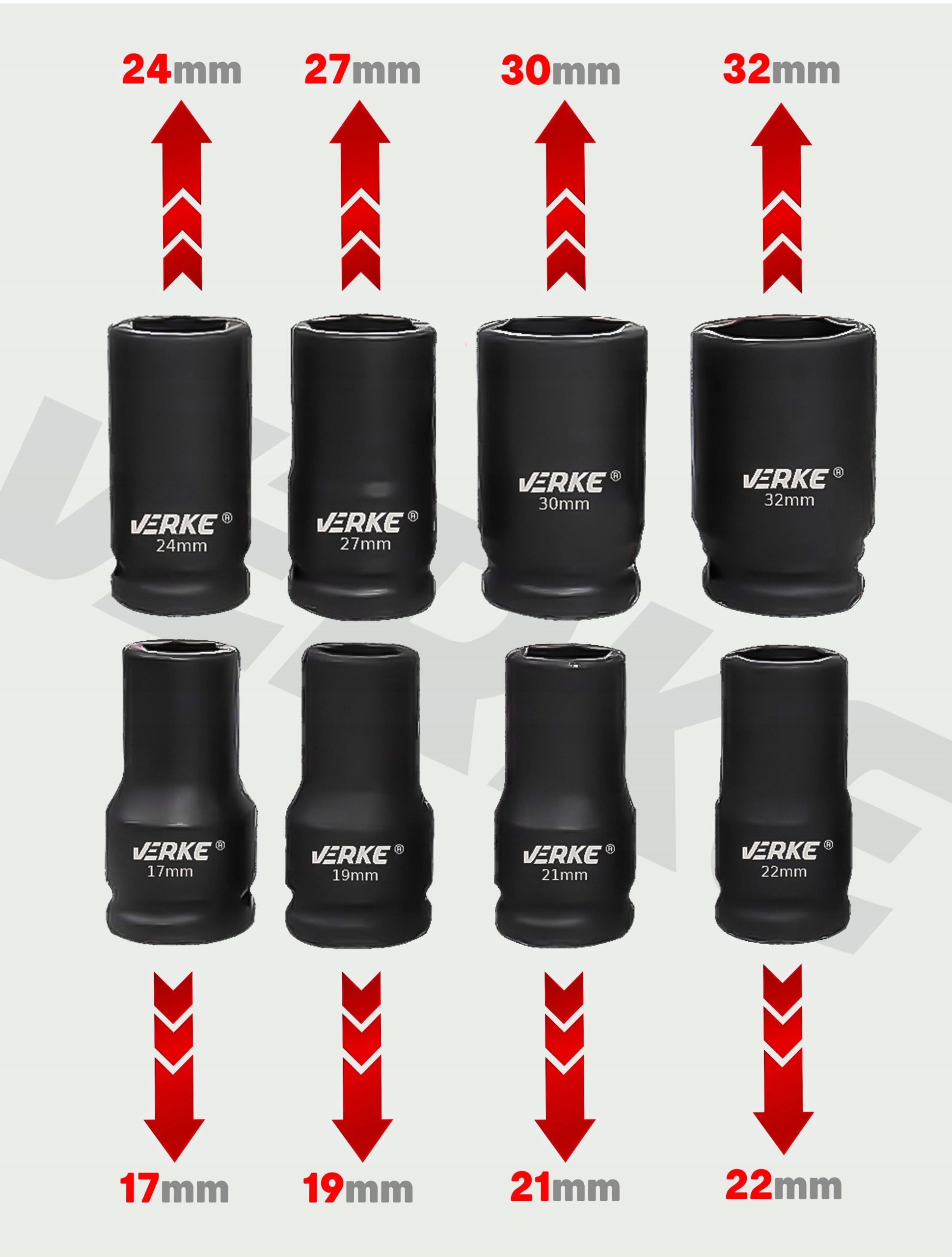 ☑️ Включає короткі та довгі шестикутні ударні гнізда в популярних розміри від 17 до 32 мм.