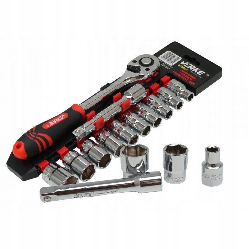 Набір інструментів 1/2" професійної якості з 12 предметів. Торцеві ключі та торцевий привід виготовлені з міцної хромованадієвої інструментальної сталі CR-V. Тріскачка має 72 зуба (робочий хід 5 градусів). Інструменти виготовляються на Тайвані з використанням матеріалів найвищої якості, новітніх технологій і патентів. Завдяки поєднанню цих факторів ми отримуємо продукт професійної якості з величезною довговічністю. Інструменти преміум-класу VERKE завдяки високій якості виготовлення та довговічності, а також інноваційним рішенням завойовують дедалі більше задоволених користувачів. Різноманітність продукції VERKE забезпечує широкий спектр застосування, від професійних автомобільних майстерень до домашніх гаражів.