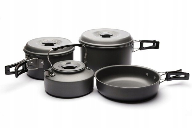 набір алюмінієвих горщиків, необхідних для кожного коропа - дозволяє легко приготувати всю їжу. Комплект включає • 1x каструля Ø 18,5 х 5 см • 1 -кратний горщик Великий Ø 18 х 11 см • 1x горщик невеликий Ø 16 х 9 см висота • 1x водонагрівач Ø 15 х 5,5 см Wyd. • 1x кришка для великої каструлі + каструля • 1x кришка для невеликої каструлі • Матеріал: алюміній • Транспортний мішок (Nylon 600D) Горщики складаються з одного в іншому, завдяки якому вони займають мало місця в сумці.