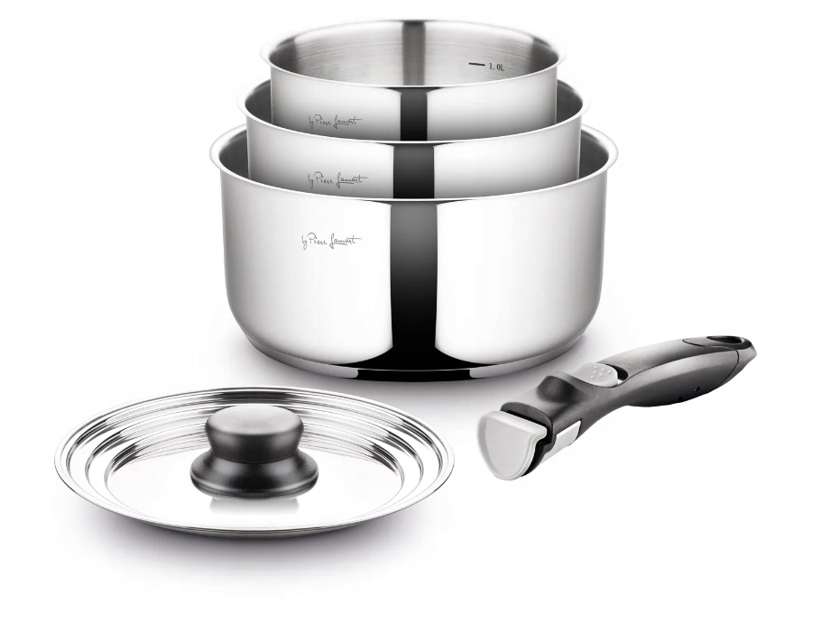 - Вміст набору: 1 х каструля 16 см, 1 х каструля 18 см, 1 х каструля 20 см, 1 х кришка, ручка