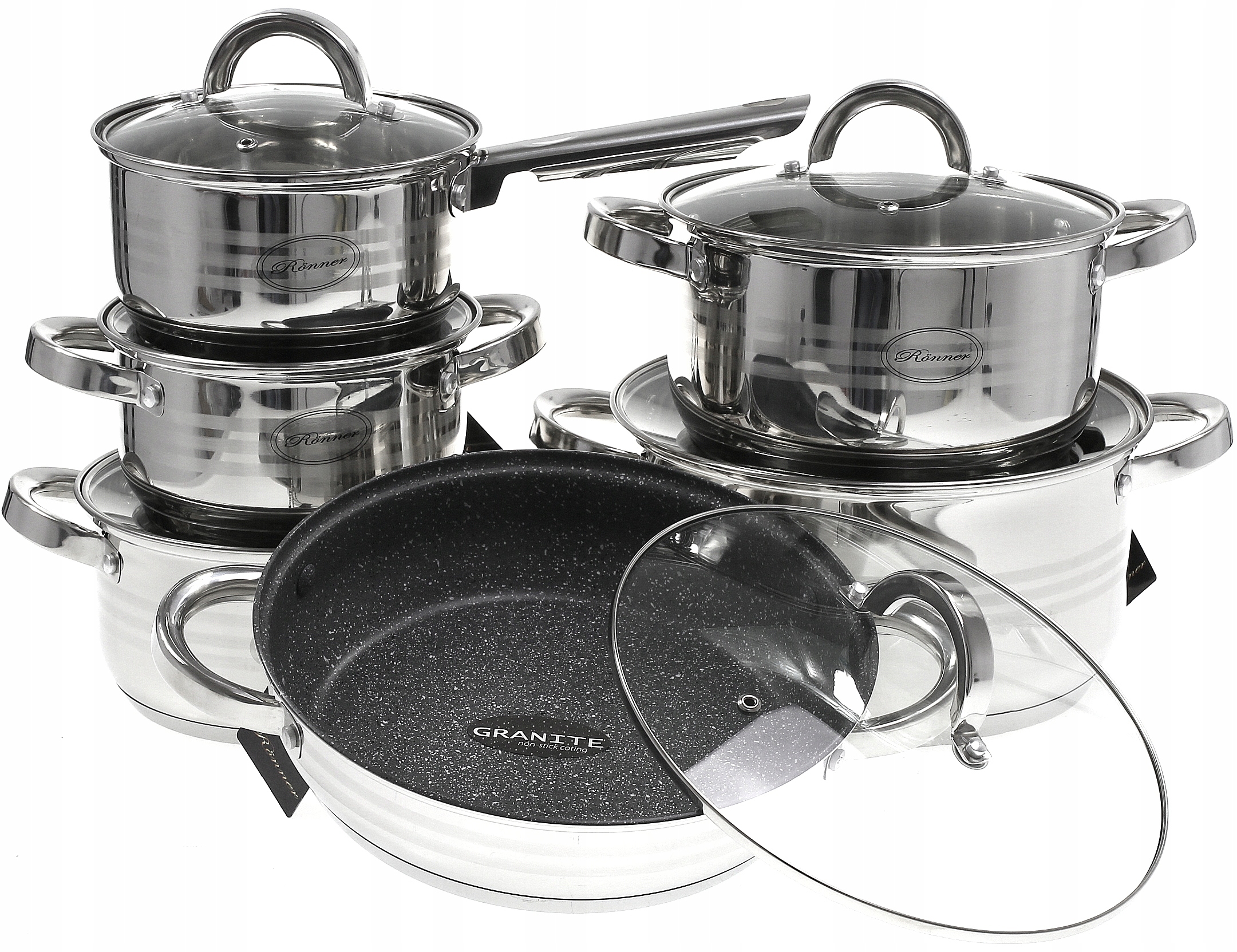 - Набір каструль із міцної високоякісної нержавіючої сталі.
