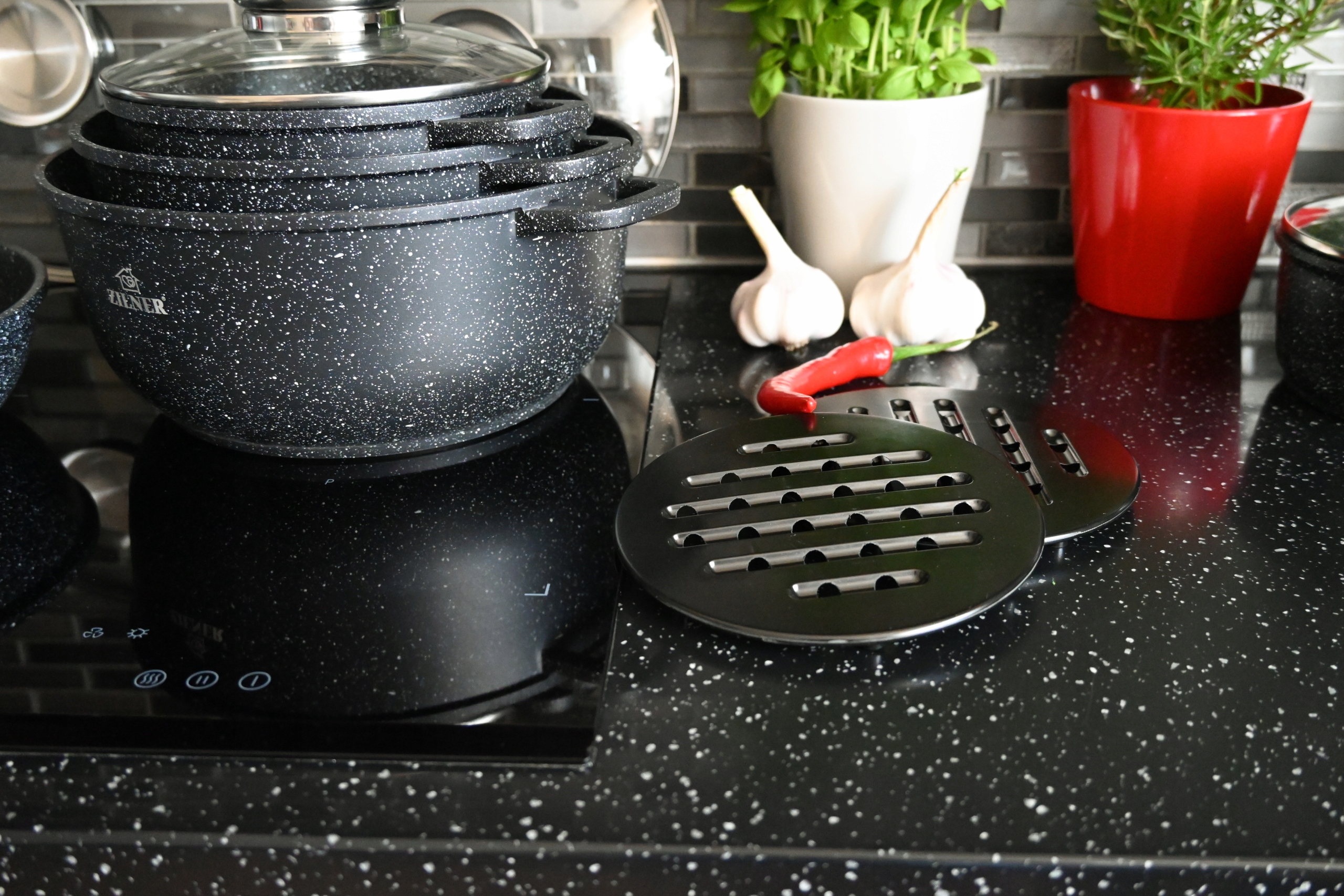 ✔️ Гранітне / мармурове покриття робить посуд надзвичайно стійким до подряпин і міцним.