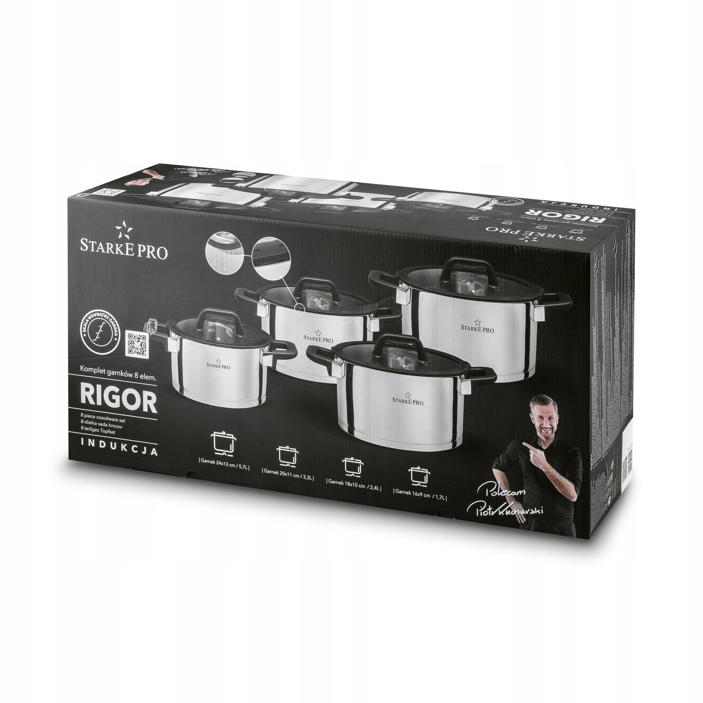 Набір горщиків з кришками індукція газу набору Starke Pro Rigor 8 El