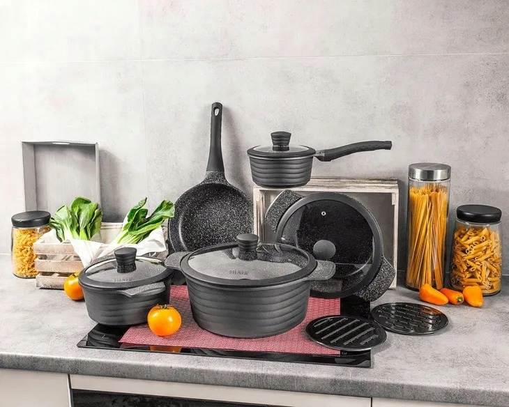 Високоякісний набір алюмінієвих каструль, покритих антипригарним мармурово-керамічним шаром