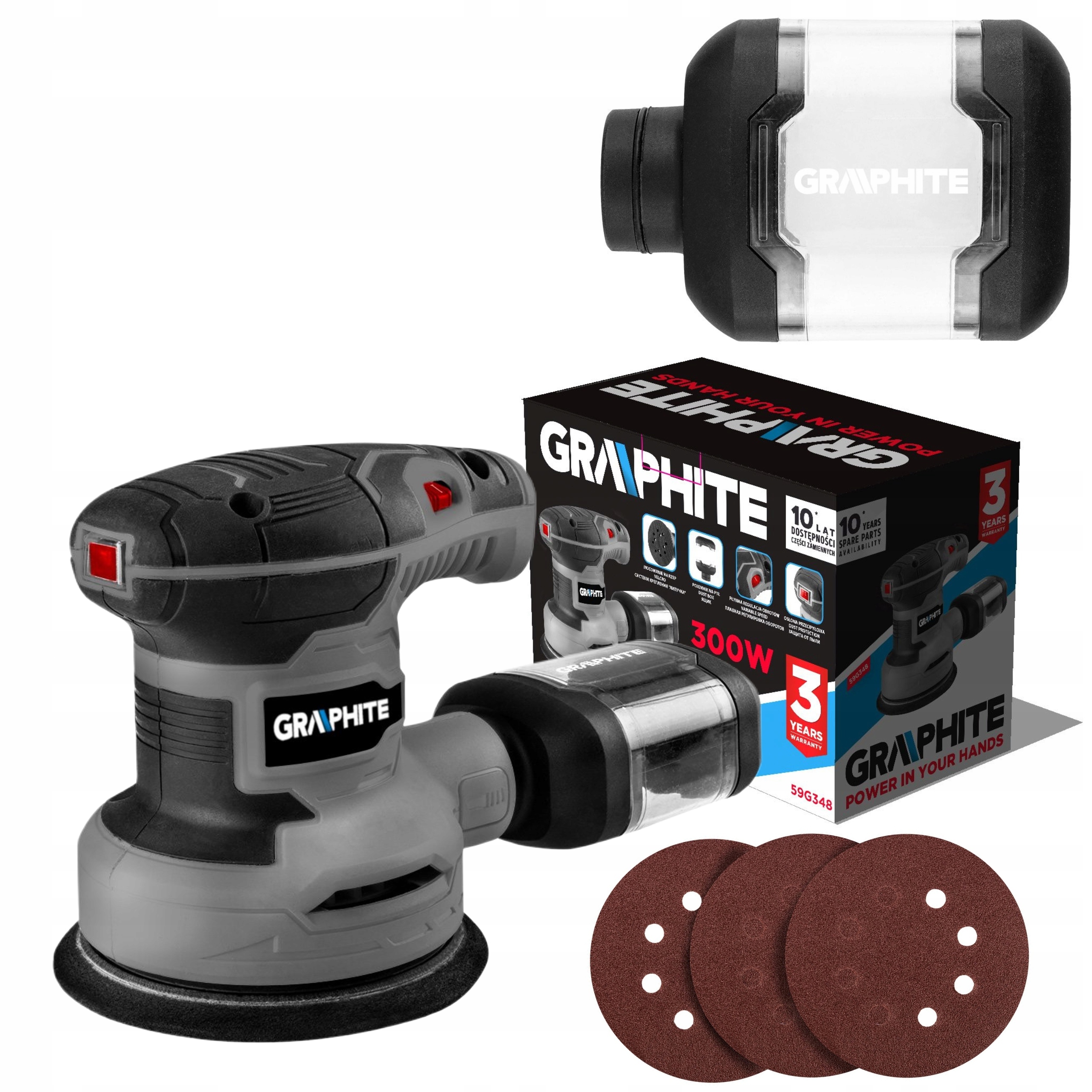 Ексцентрична шліфувальна машина потужністю 300 Вт, ніжка 125 мм 59G384 GRAPHITE — це інструмент, який використовує коливальний і обертальний рух, що економить час і забезпечує швидші результати роботи. М'ясорубка може працювати на швидкості від 7 000 до 13 000 обертів на хвилину. Оснащений ніжкою 125 мм, він дає змогу швидко встановлювати за допомогою липучки та виконувати багато завдань у майстерні.