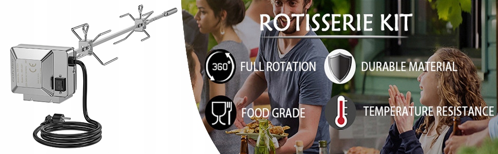 Набір грилів складається з грилів із нержавіючої сталі, виделок для м’яса з нержавіючої сталі 304, опори двигуна, ручки грилів , кріпильний матеріал і міцний електродвигун 230 В.