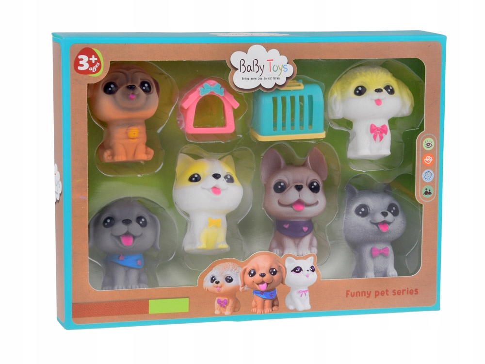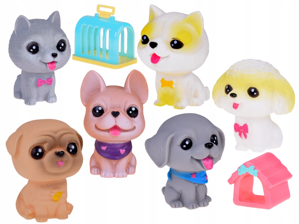 При натисканні вони видають смішний писк, як справжні цуценята. Кожна фігурка має отвір внизу.