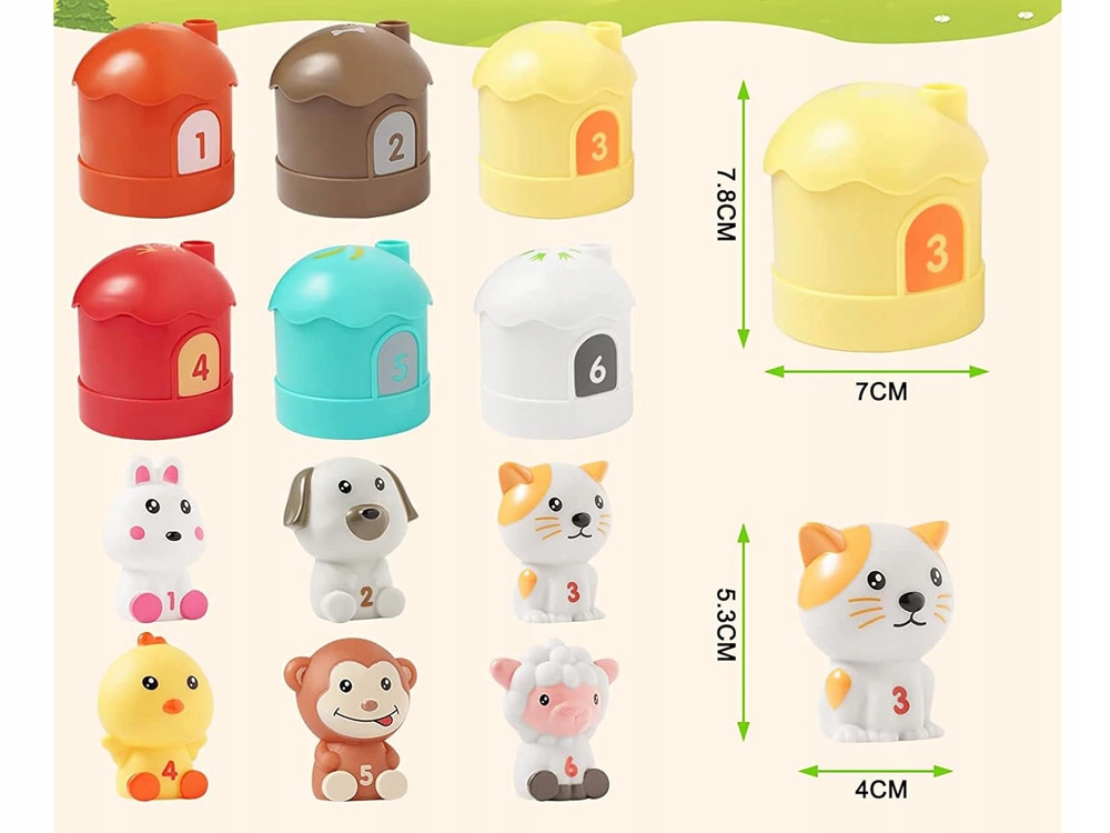 - Чудовий набір тварин у будиночках для гри в театр, навчання рахунку та ігор у ванні. Тварини живуть кожна у своєму будинку, будинки круглі з дахом, що відкривається, і на кожному будинку є номер. У будинку живе гумова тварина, у кожної тварини на животі номер, а внизу є отвір, тож з ним можна грати в театр. У набір входить: - кролик від н. 1 - живе в помаранчевому будиночку - собака з №. 2 - живе в коричневому будинку - кошеня з н. 3 - живе в жовтому будинку - жовте курча з №. 4 - живе в червоному будинку - мавпа з №. 5 - живе в тепличному будиночку - вівця з н. 6 - живе в кремовому будиночку Розміри: - будиночок 8 х 7 х 7 см - висота тварини 6 см. Гра з такими фігурками дозволить кожній дитині та батькові створити неповторну казку про пригоди веселих звіряток. Завдяки невеликим розмірам набір легко носити в рюкзаку. Завдяки тому, що іграшки зроблені з пластику, ними легко можна грати під час купання, в басейні або пісочниці, ідей маса. Магазин «Джокомісіада» пропонує широкий вибір іграшок для дітей різного віку.