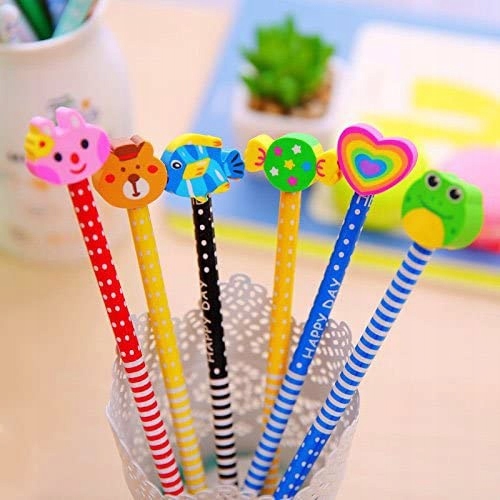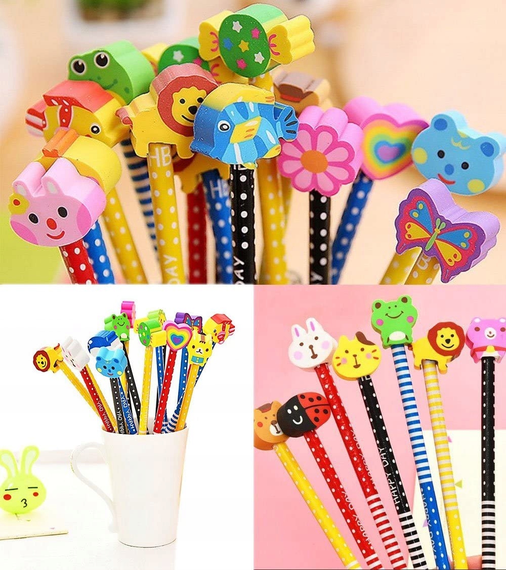 Представляємо набір кольорових олівців з милими гумками у формі тварин. Набір порадує кожного юного мультиплікатора. Кольорові олівці прикрашені різнокольоровими візерунками та оздоблені гумками різної форми.