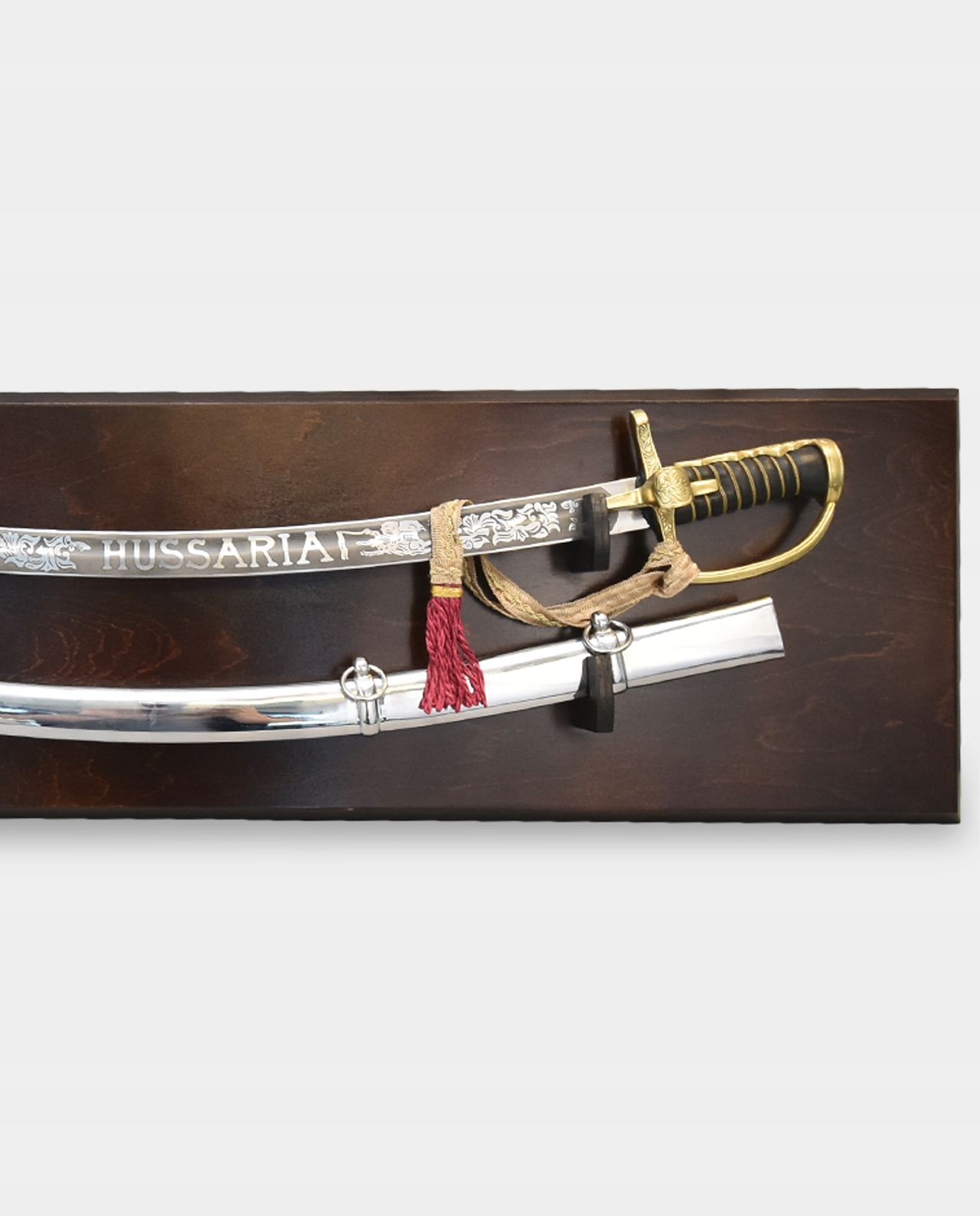 * гусарську шаблю з піхвами та клинком з гравіюванням з обох сторін «Гусари» та «Ісус Марія Йосиф Spes Mea»