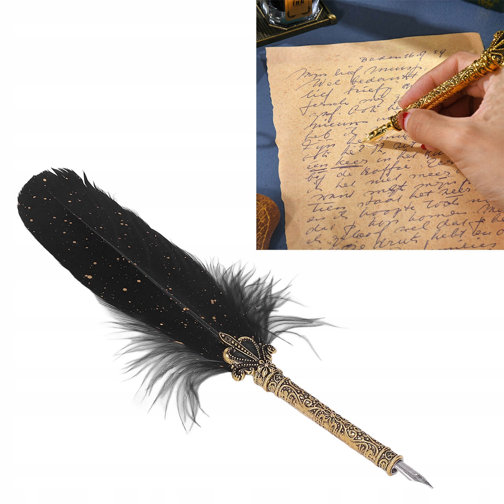2. Ретро елегантний: набір пір’я з гусячою ручкою має вишукані ретро та елегантні візерунки, які можуть особливі ваші потреби.