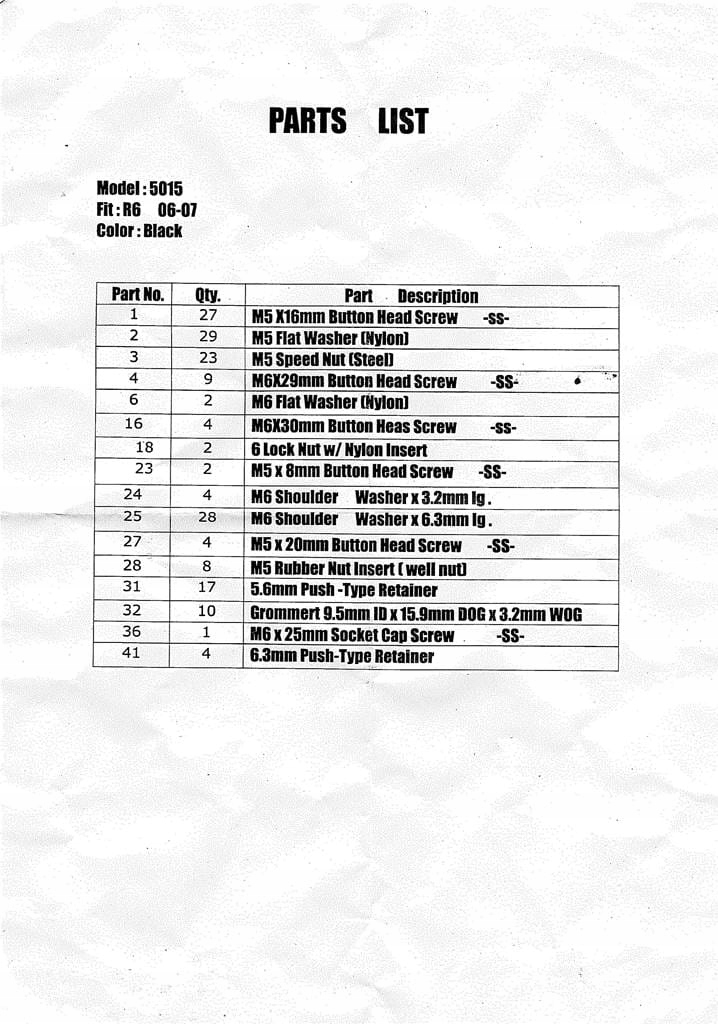НАБІР Гвинтів ДЛЯ ОБТІЧНИКІВ YAMAHA R6 2006-2007 RJ11